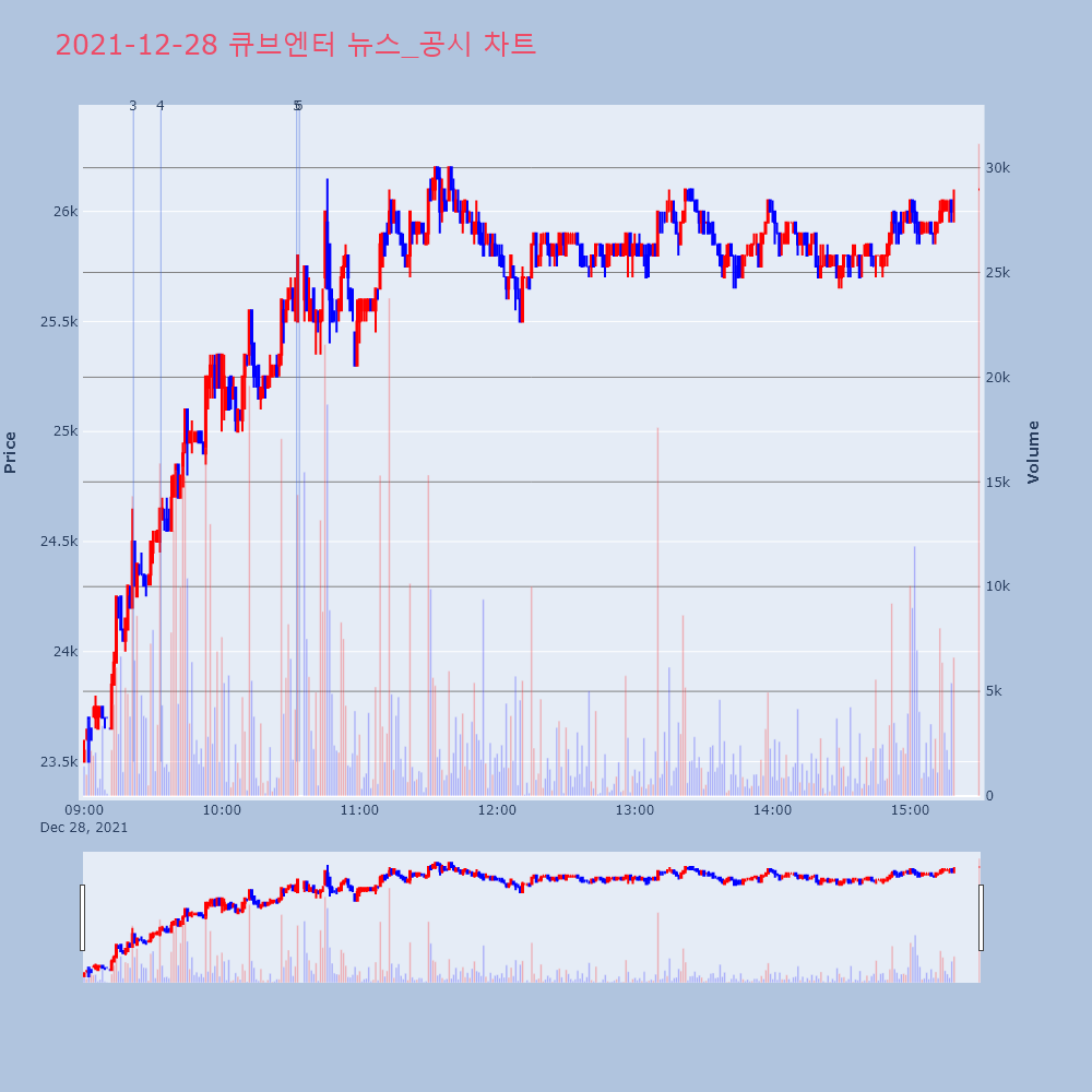 | 6 | 큐브엔터, +9.79% VI 발동큐브엔터(182360)가 VI가 발동했다. 전일 대비 | 조선경제 | 큐브엔터 | 2021-12-28 10:33:49 |
