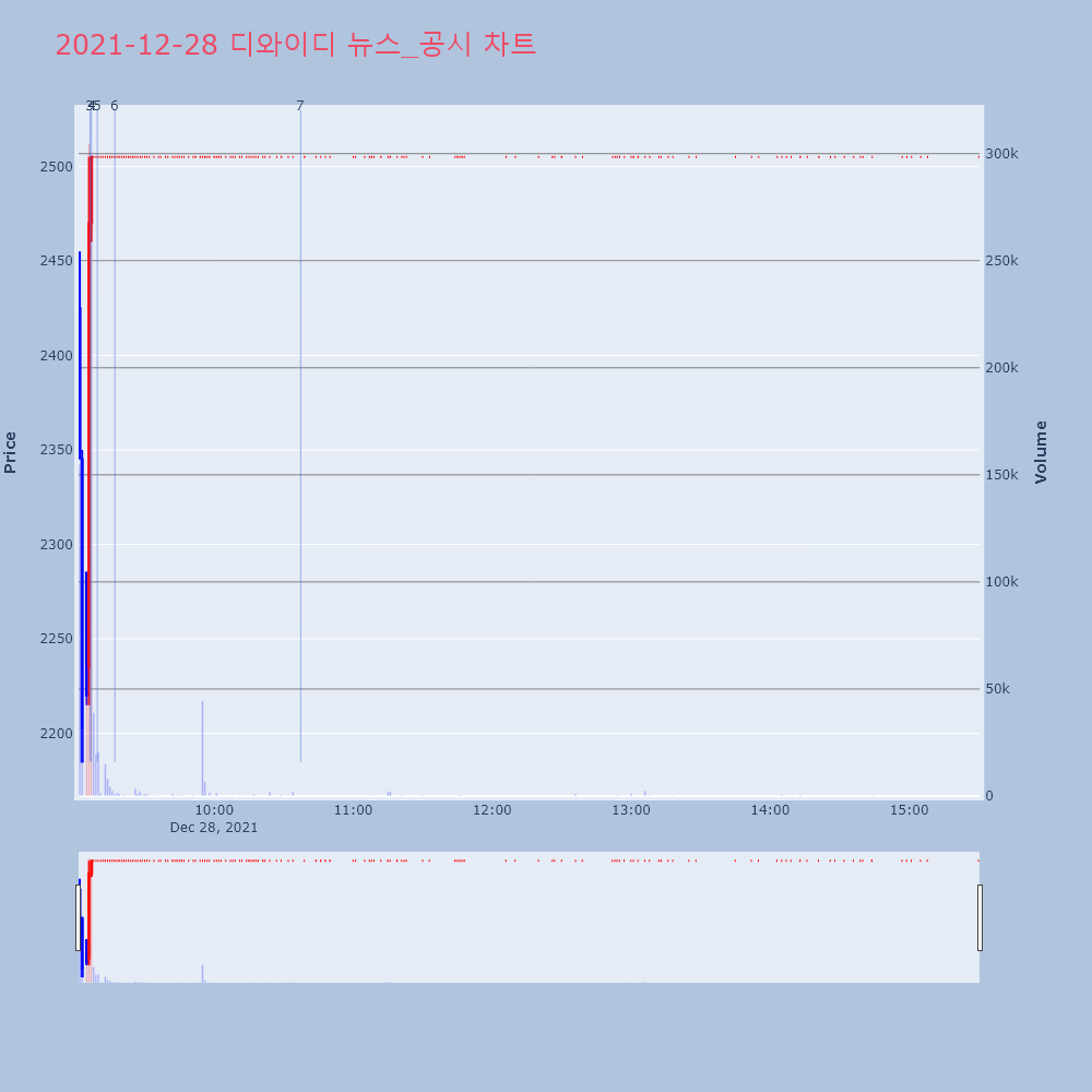 | 6 | [특징주] 디와이디, 매매거래 정지 해제 첫날 '상한가' 제목 : [특징주] 디와이디, 매매거래 정지 해제 첫날 | 인포스탁 | 디와이디 | 2021-12-28 09:17:09 |