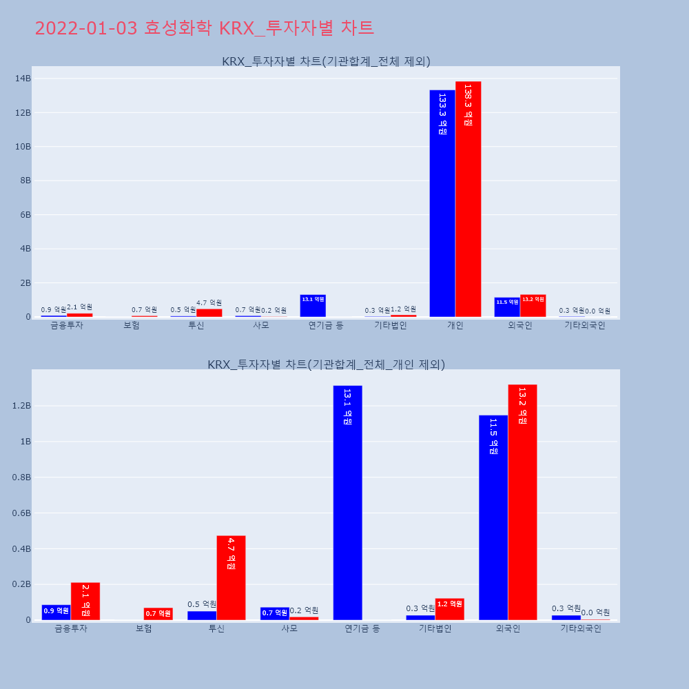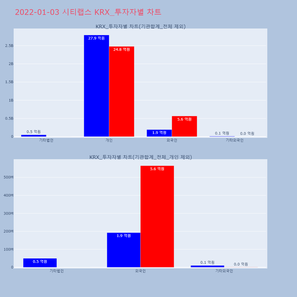 | 개인 | 77,497 | 65,844 | -11,653 | 9,422,522,500 | 7,982,622,500 | -1,439,900,000 |