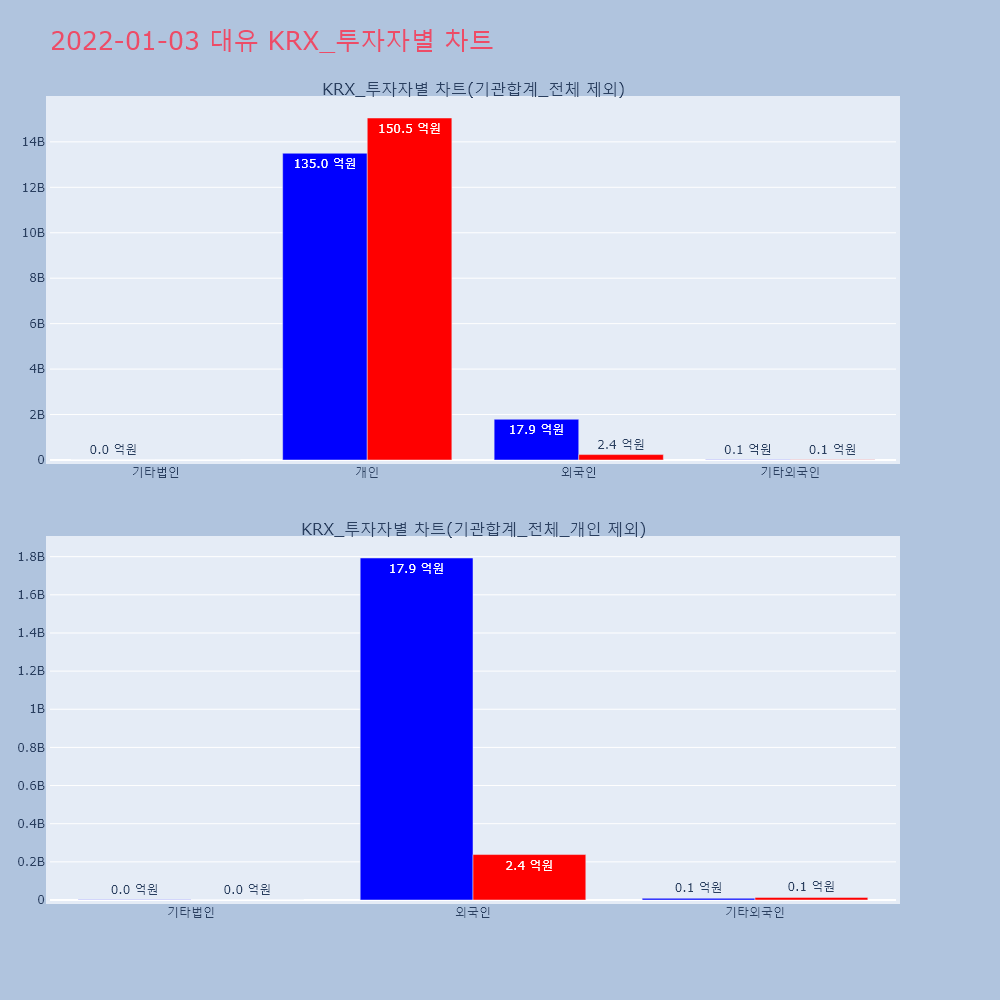 | 투자기관 | 거래량_매도 | 거래량_매수 | 거래량_순매수 | 거래대금_매도 | 거래대금_매수 | 거래대금_순매수 |