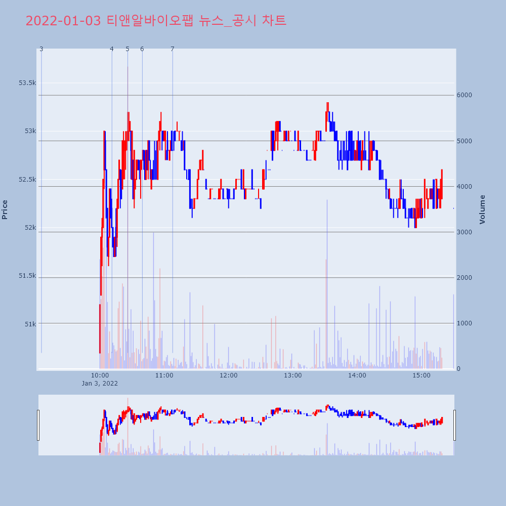 | 2 | 티앤알바이오팹, 인체 유래 상용화 세포 은행 구축 완료 제목 : 티앤알바이오팹, 인체 유래 상용화 세포 은행 | 인포스탁 | 티앤알바이오팹 | 2022-01-03 08:52:13 |