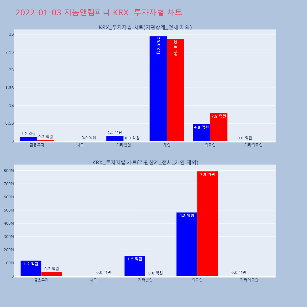 | 투자기관 | 거래량_매도 | 거래량_매수 | 거래량_순매수 | 거래대금_매도 | 거래대금_매수 | 거래대금_순매수 |