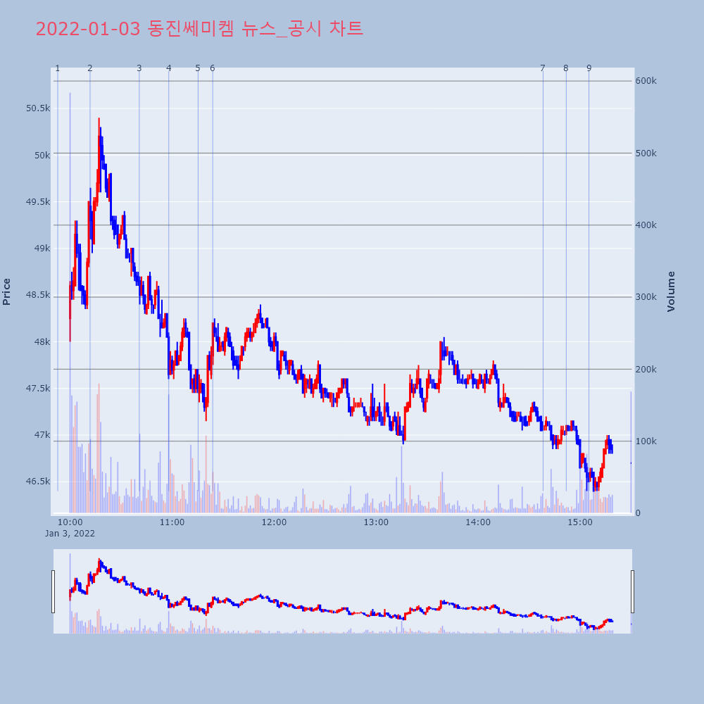 | 9 | 동진쎄미켐, 오스템임플란트 횡령 소식에 불똥…8%대↓동진쎄미켐 주가가 하락하고 있다. 지난해 단기간에 이 | 한경/증권 | 동진쎄미켐 | 2022-01-03 15:05:14 |