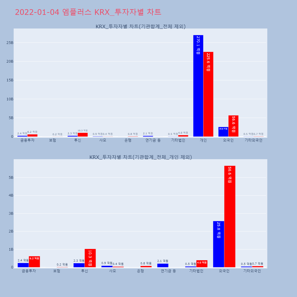 | 투자기관 | 거래량_매도 | 거래량_매수 | 거래량_순매수 | 거래대금_매도 | 거래대금_매수 | 거래대금_순매수 |