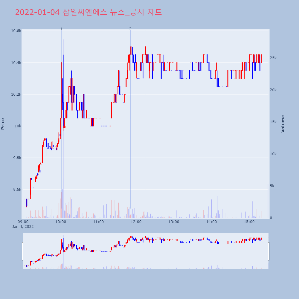| 1 | 삼일씨엔에스, +8.67% VI 발동삼일씨엔에스(004440)가 VI가 발동했다. 전일 대 | 조선경제 | 삼일씨엔에스 | 2022-01-04 10:01:26 |