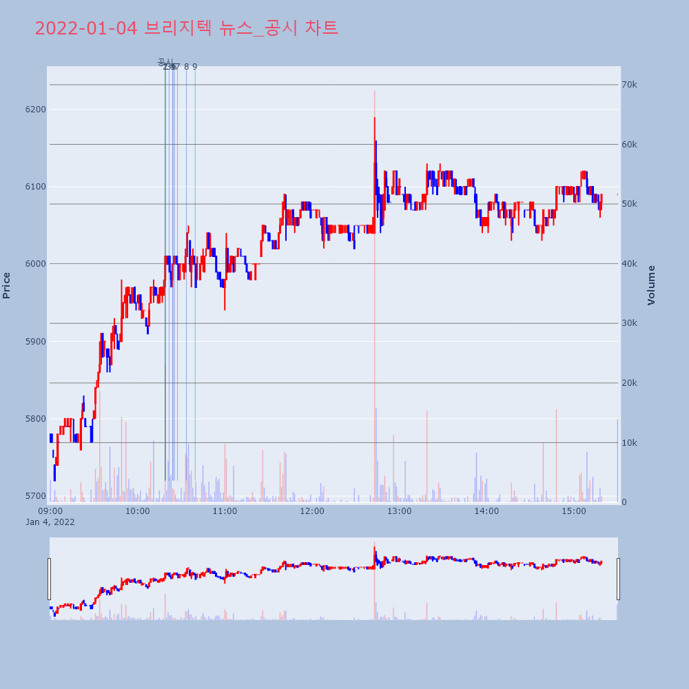 | 10 | [코스닥 공시] 브리지텍 / 비아트론 / 기가레인 ◇브리지텍=KT와 33억원 규모 하나카드 AICC 챗봇 | 매일경제 | 브리지텍 | 2022-01-04 17:35:34 |
