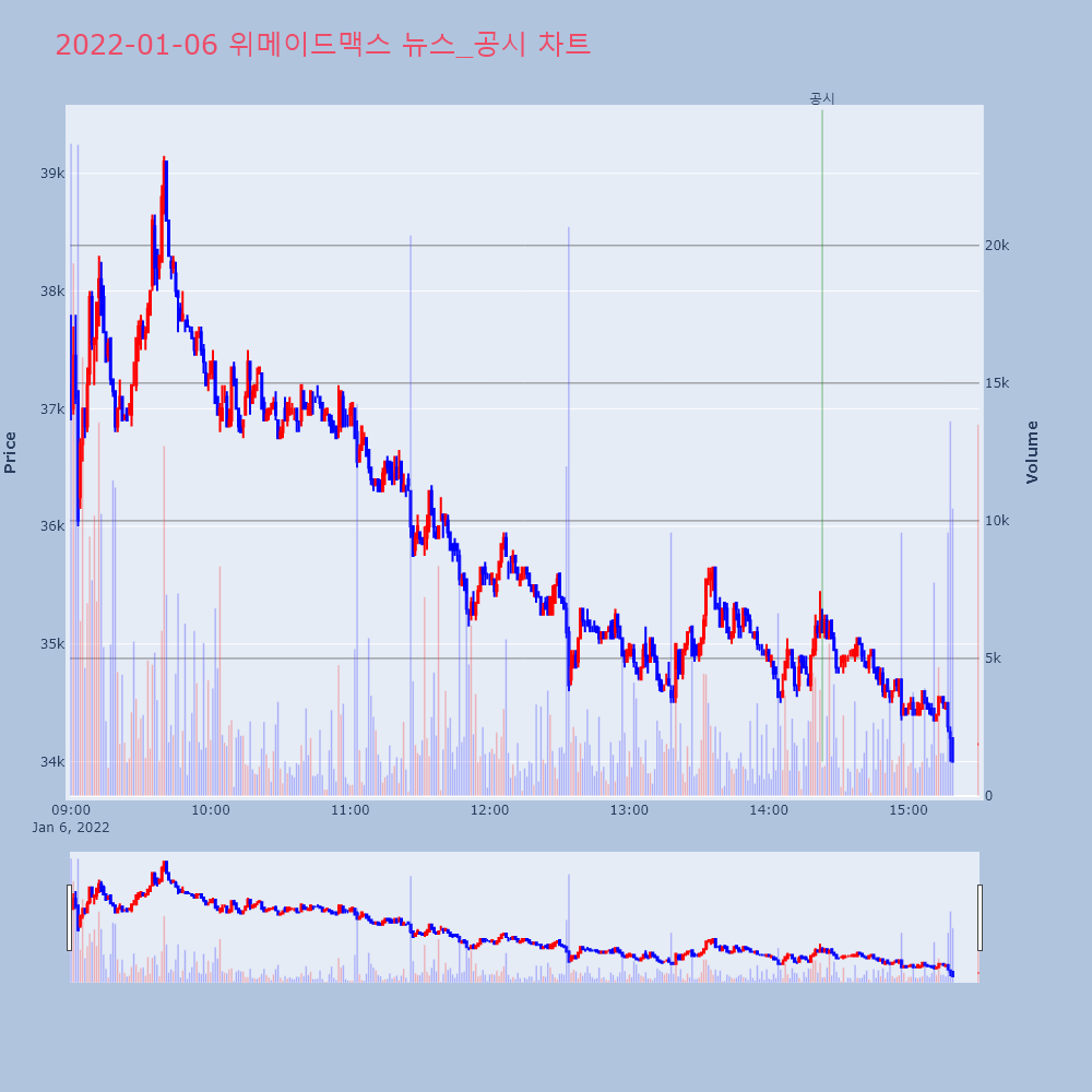 | 13 | [게시판] 위메이드, 디지털자산은행 시그넘에 전략적 투자[게시판] 위메이드, 디지털자산은행 시그넘에 전략적 투 | 연합뉴스 | 위메이드 | 2022-01-06 14:58:32 |