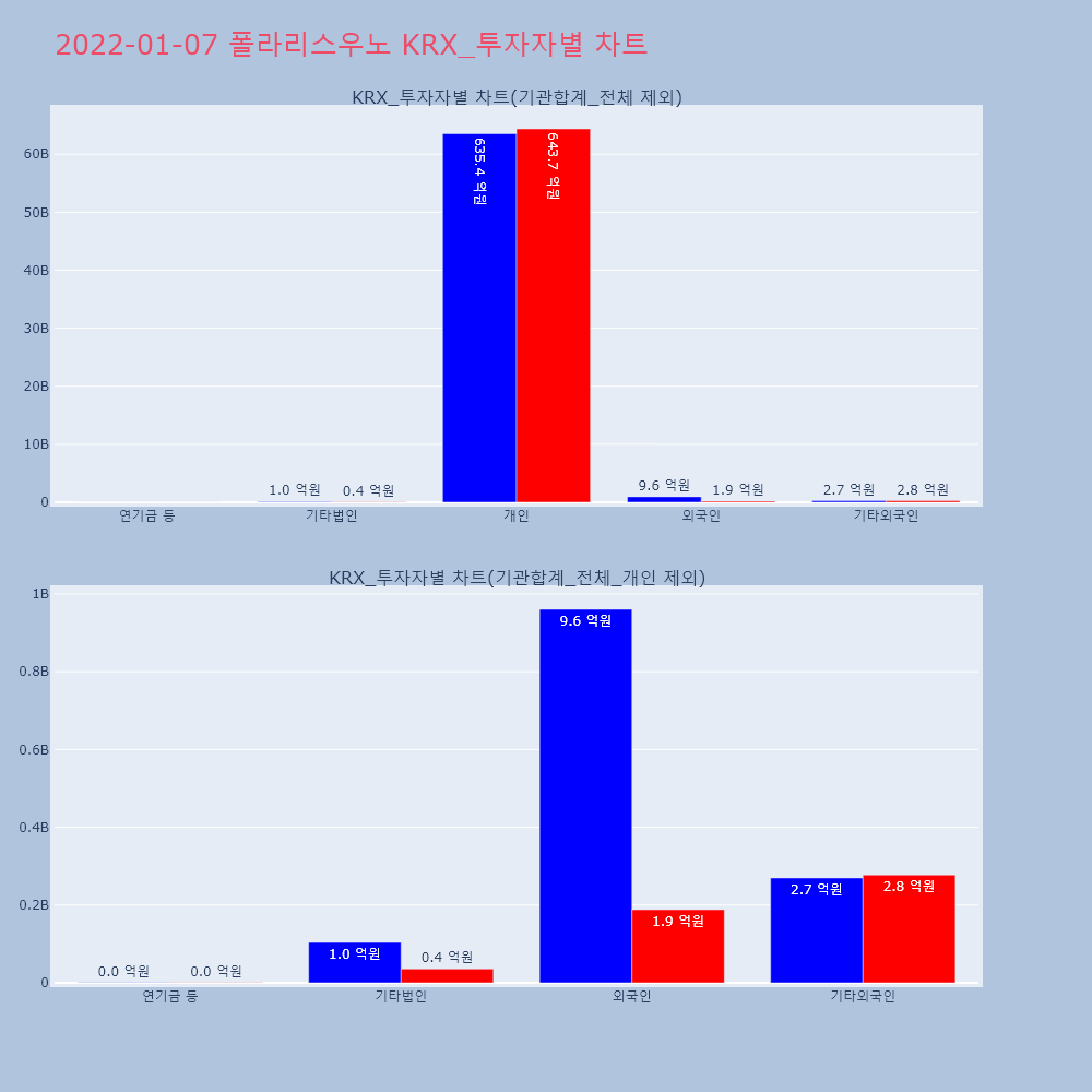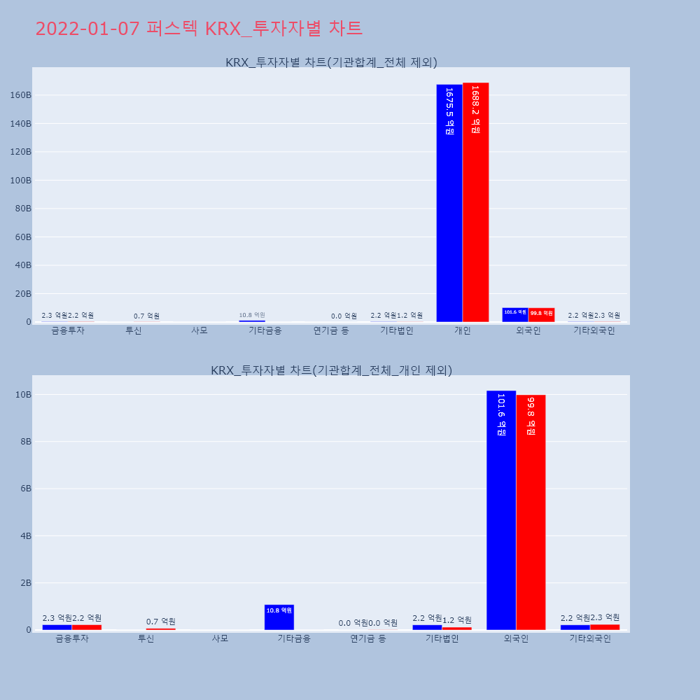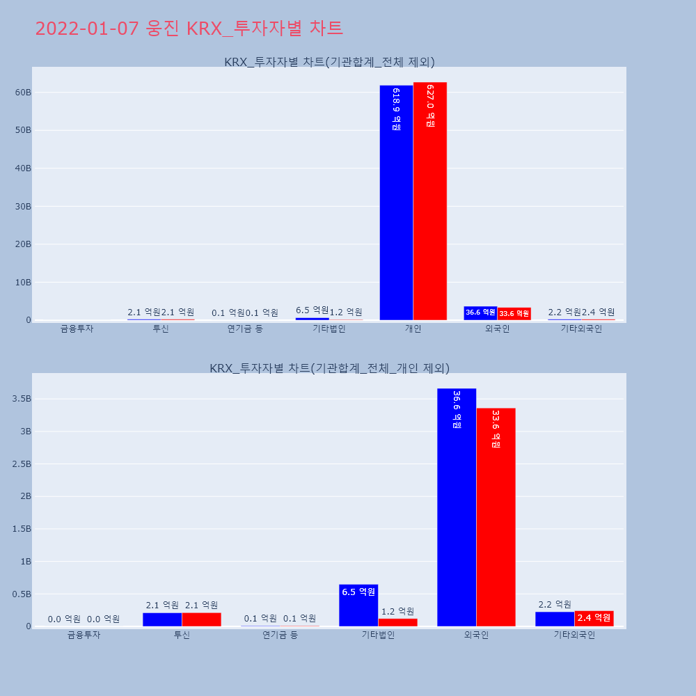 | 투자기관 | 거래량_매도 | 거래량_매수 | 거래량_순매수 | 거래대금_매도 | 거래대금_매수 | 거래대금_순매수 |