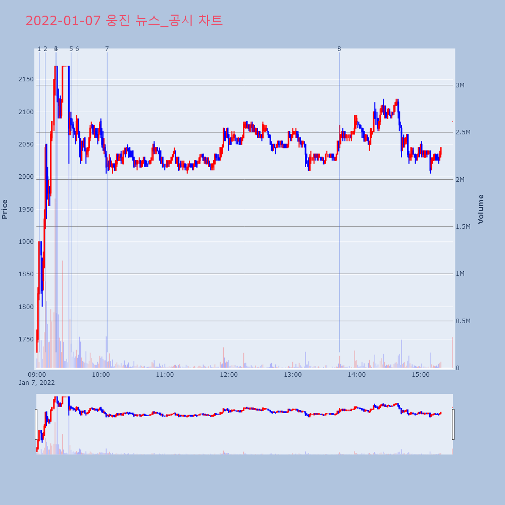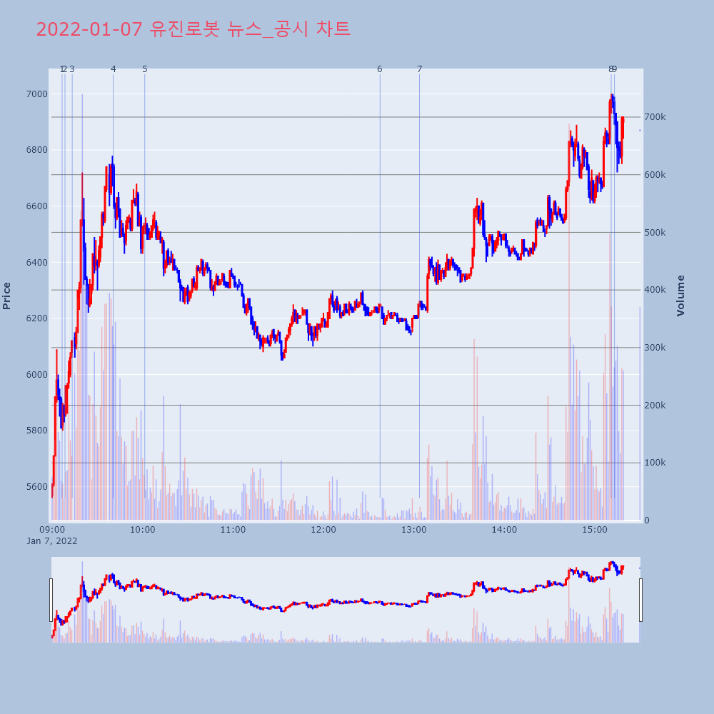| 3 | 유진로봇, +10.87% VI 발동유진로봇(056080)이 VI가 발동했다. 전일 대비 | 조선경제 | 유진로봇 | 2022-01-07 09:13:18 |