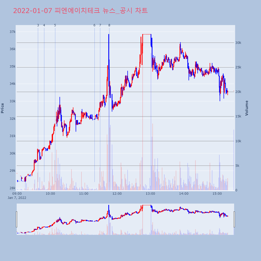 | 8 | [이시각 상한가] 피엔에이치테크(▲8500) - 7일 오전 11시45분[이투데이/e2BOT 기자(e2bot@etoday.co | 이투데이 | 피엔에이치테크 | 2022-01-07 11:46:02 |