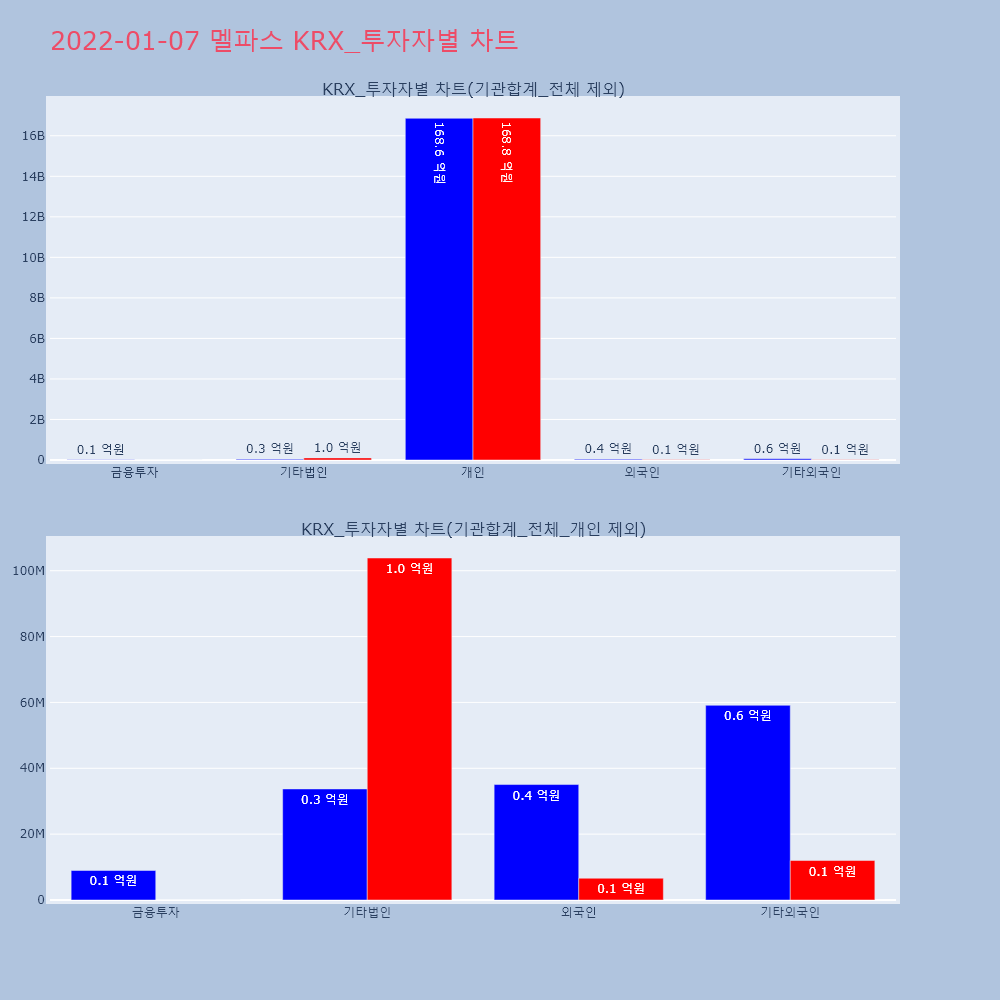 | 투자기관 | 거래량_매도 | 거래량_매수 | 거래량_순매수 | 거래대금_매도 | 거래대금_매수 | 거래대금_순매수 |