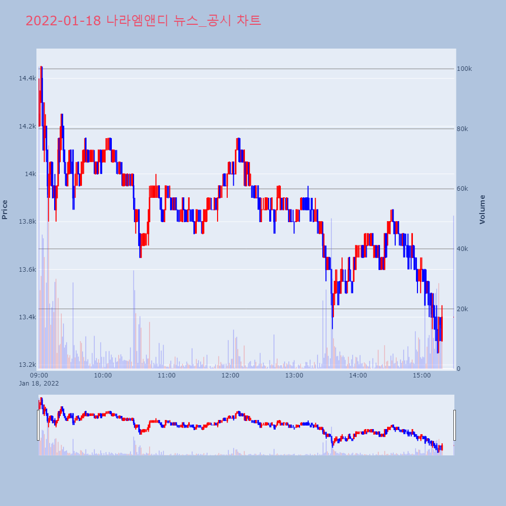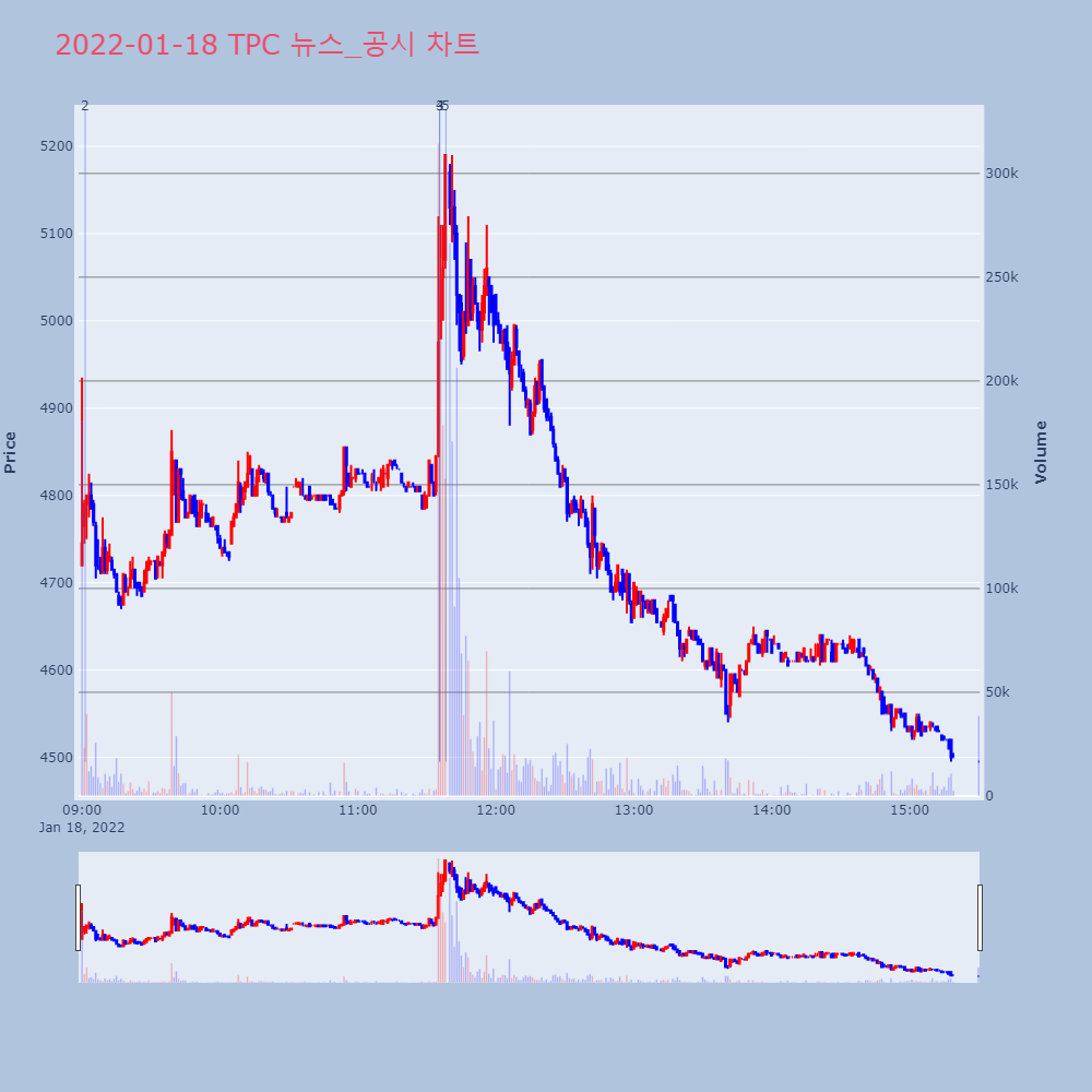 | 2022-01-18 16:50:00 | 20220118800417 | 매출액또는손익구조30%(대규모법인은15%)이상변경 |