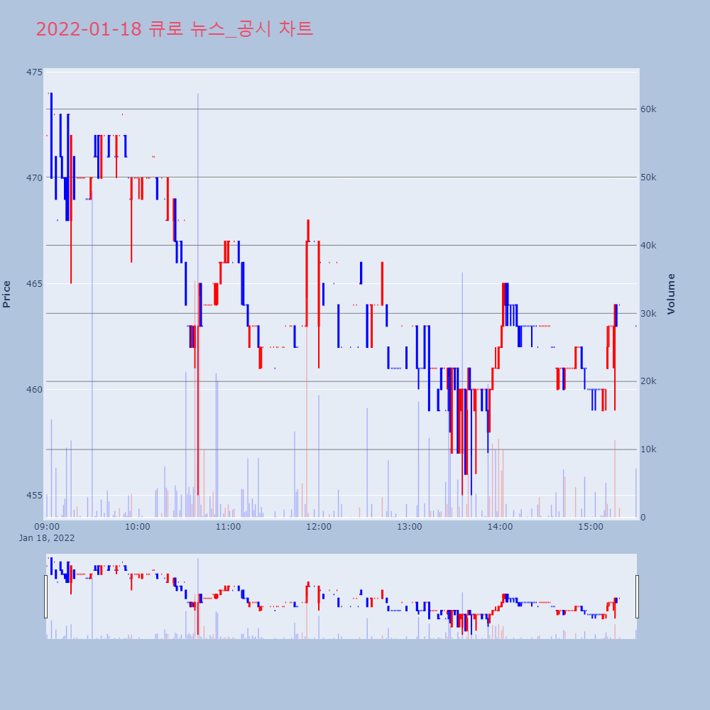 | 1 | 큐로, 21년 개별 영업손실 157.46억원 큐로는 21년 개별기준 영업손실이 157.46억원으로 | 인포스탁 | 큐로 | 2022-01-18 16:50:17 |
