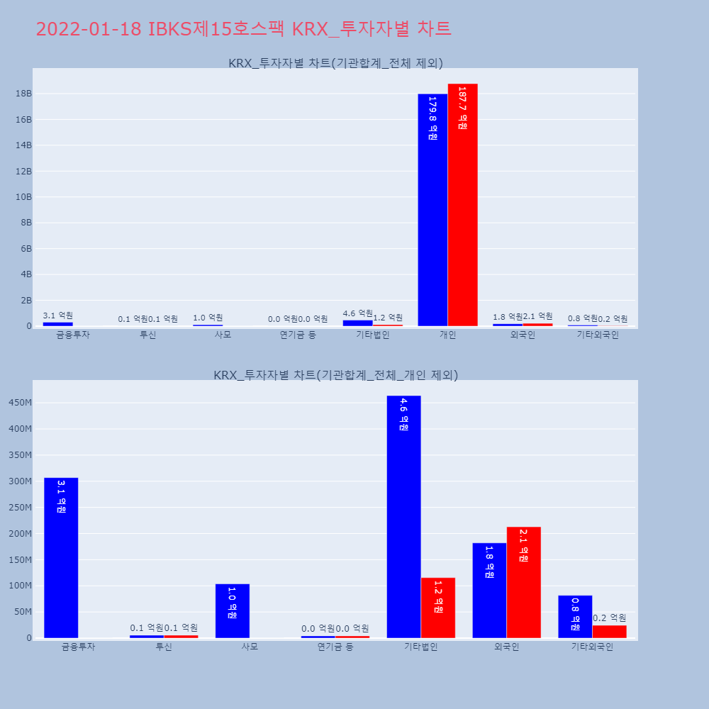 | 투자기관 | 거래량_매도 | 거래량_매수 | 거래량_순매수 | 거래대금_매도 | 거래대금_매수 | 거래대금_순매수 |