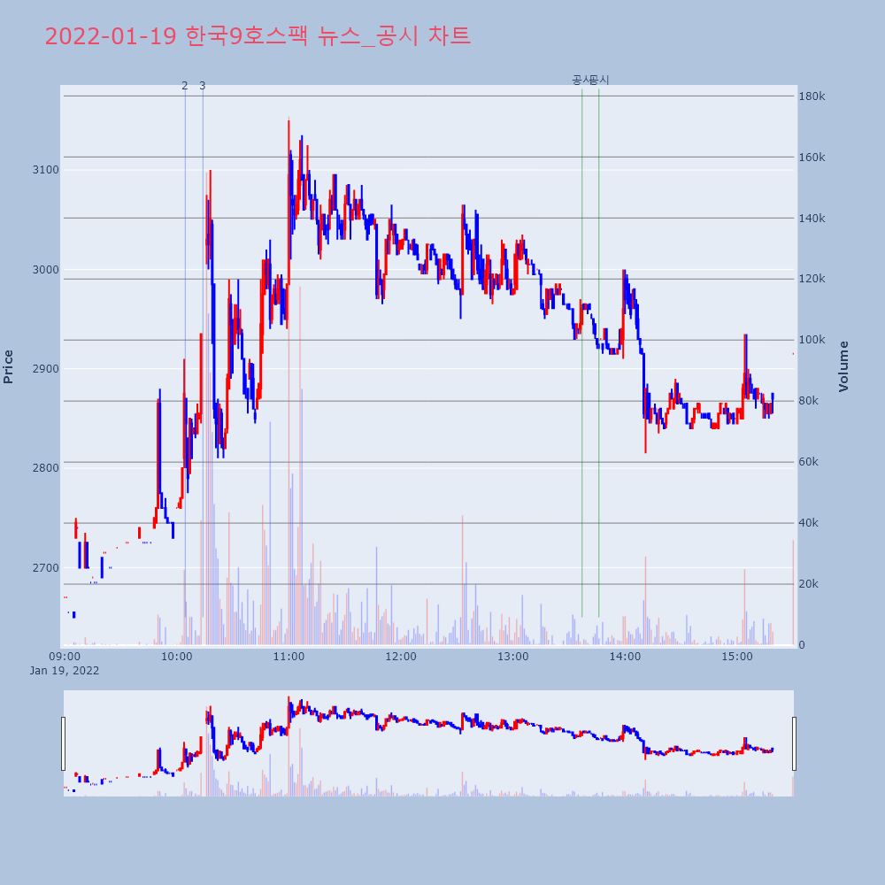 | 3 | 한국9호스팩, +9.93% VI 발동한국9호스팩(368770)이 VI가 발동했다. 전일 대 | 조선경제 | 한국9호스팩 | 2022-01-19 10:14:02 |