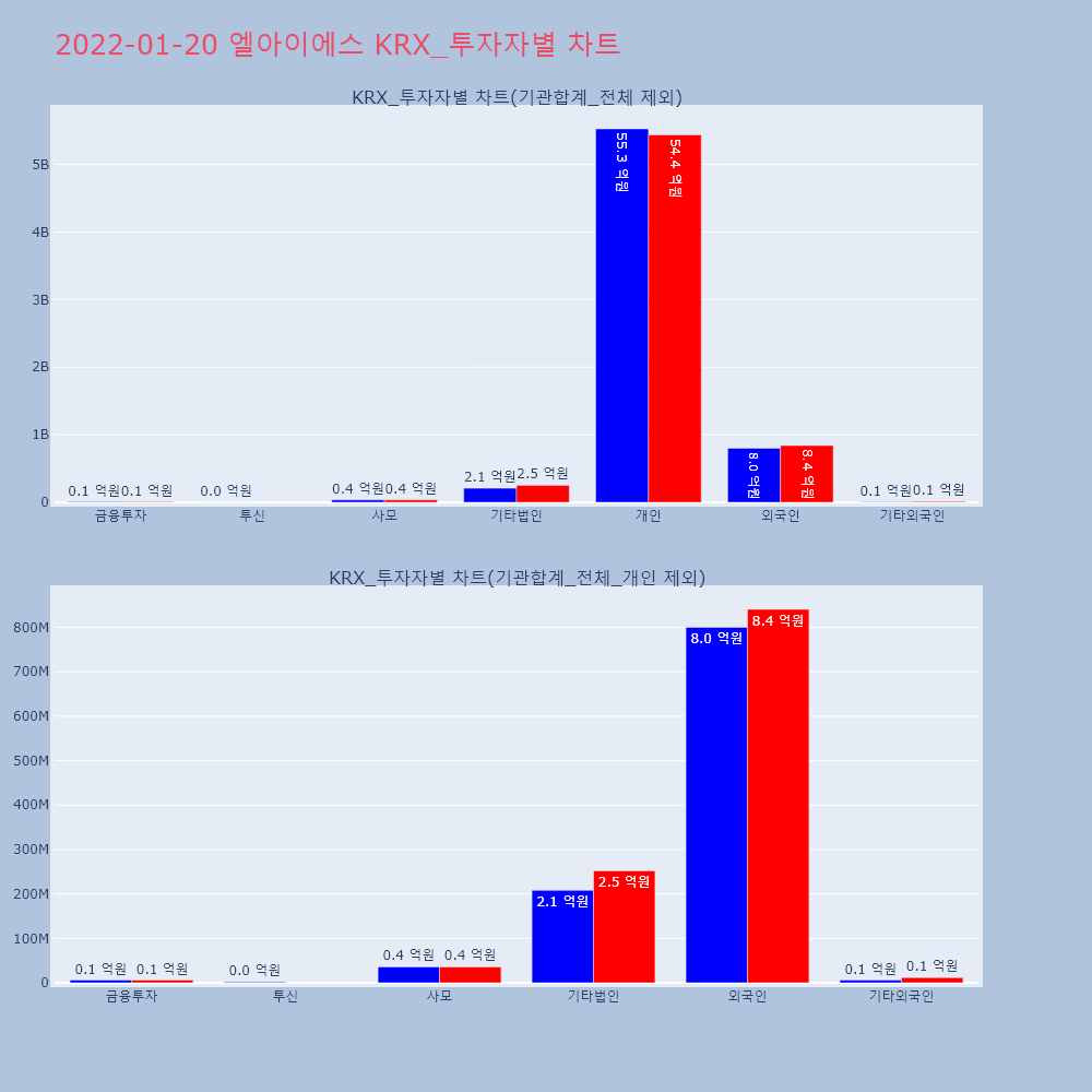 | 투자기관 | 거래량_매도 | 거래량_매수 | 거래량_순매수 | 거래대금_매도 | 거래대금_매수 | 거래대금_순매수 |