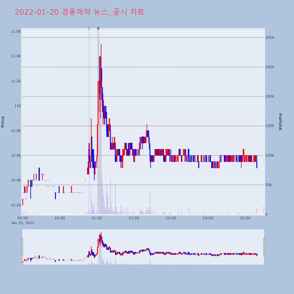 | 4 | 경동제약, +9.80% VI 발동경동제약(011040)이 VI가 발동했다. 전일 대비 | 조선경제 | 경동제약 | 2022-01-20 11:02:06 |