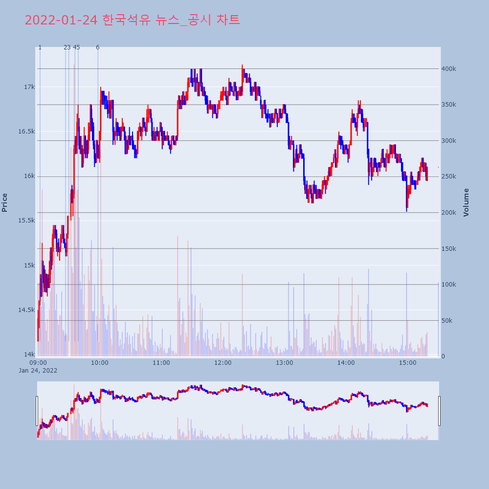 11 | [장초반 인기 검색 종목 PICK5] - 케이옥션, 한국석유, 휴마시스... 최적의 매매타이밍을 실시간으로 전송하여 투자자들에게 도 | 파이낸셜 | 한국석유 | 2022-01-24 09:58:19 |