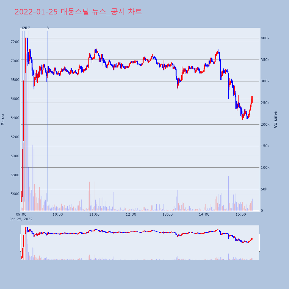 | 1 | 대동스틸, +8.80% VI 발동대동스틸(048470)이 VI가 발동했다. 전일 대비 | 조선경제 | 대동스틸 | 2022-01-25 09:02:19 |