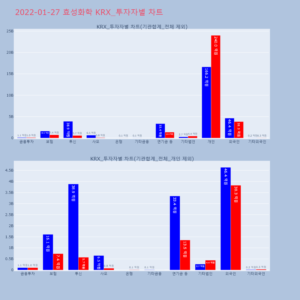 | 기관합계 | 164,294 | 76,970 | -87,324 | 24,650,718,500 | 11,567,433,500 | -13,083,285,000 |
