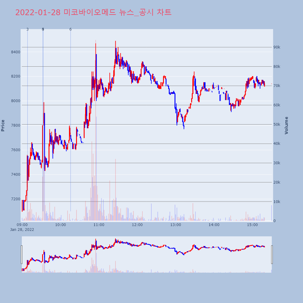 | 5 | 미코바이오메드, +9.31% VI 발동미코바이오메드(214610)가 VI가 발동했다. 전일 | 조선경제 | 미코바이오메드 | 2022-01-28 09:32:45 |