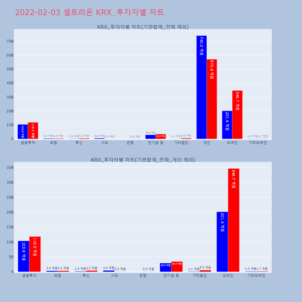| 투자기관 | 거래량_매도 | 거래량_매수 | 거래량_순매수 | 거래대금_매도 | 거래대금_매수 | 거래대금_순매수 |