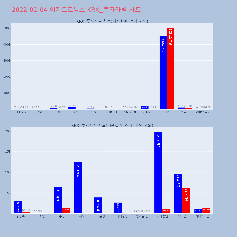 | 투자기관 | 거래량_매도 | 거래량_매수 | 거래량_순매수 | 거래대금_매도 | 거래대금_매수 | 거래대금_순매수 |