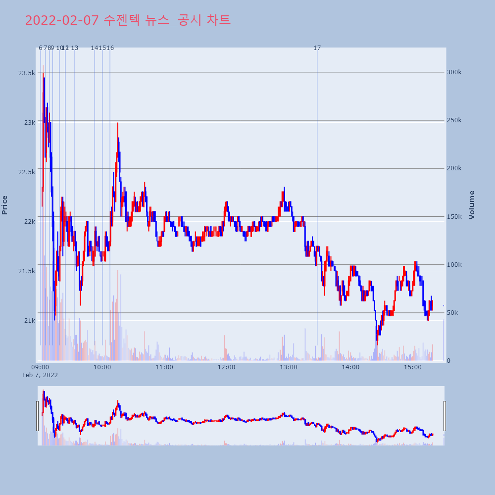 | 16 | [특징주] 수젠텍, 진단키트 판매 승인 소식에 17% 급등수젠텍(253840)이 식품의약품안전처로부터 신속항원진 | 조선경제 | 수젠텍 | 2022-02-07 10:07:27 |