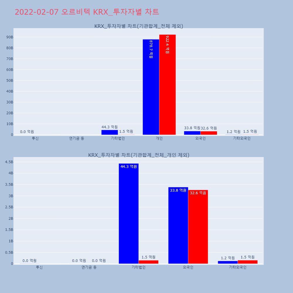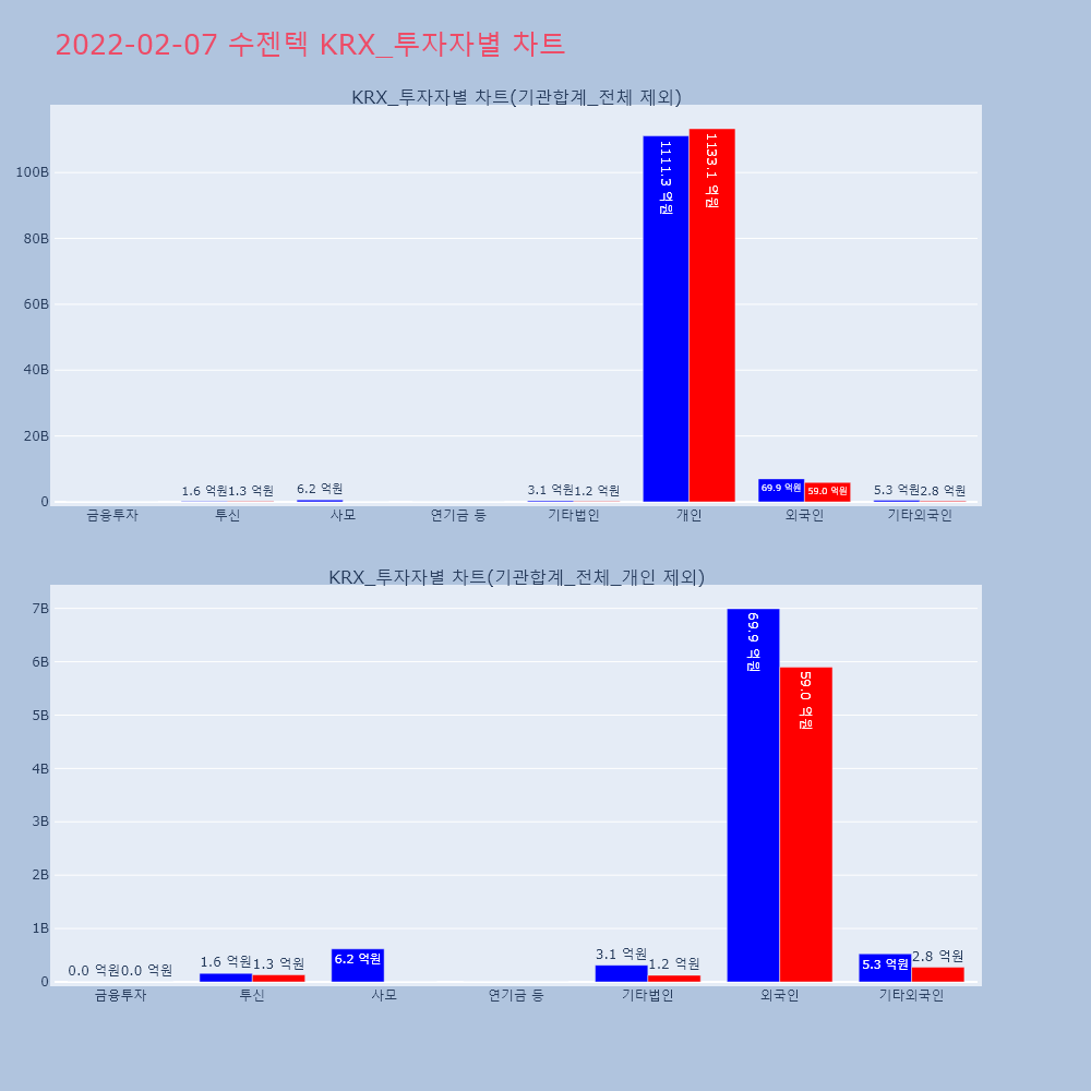 | 투자기관 | 거래량_매도 | 거래량_매수 | 거래량_순매수 | 거래대금_매도 | 거래대금_매수 | 거래대금_순매수 |