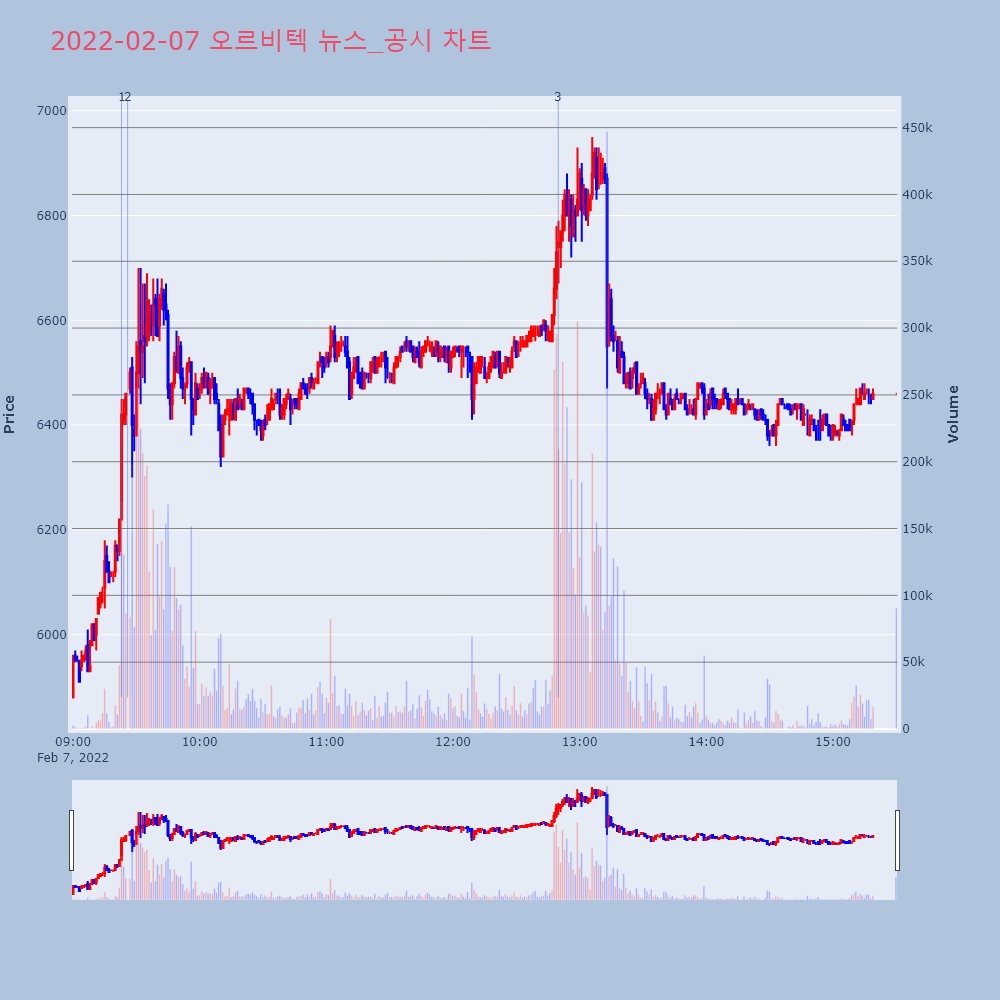 | 2 | 오르비텍, +9.49% VI 발동오르비텍(046120)이 VI가 발동했다. 전일 대비 | 조선경제 | 오르비텍 | 2022-02-07 09:25:51 |