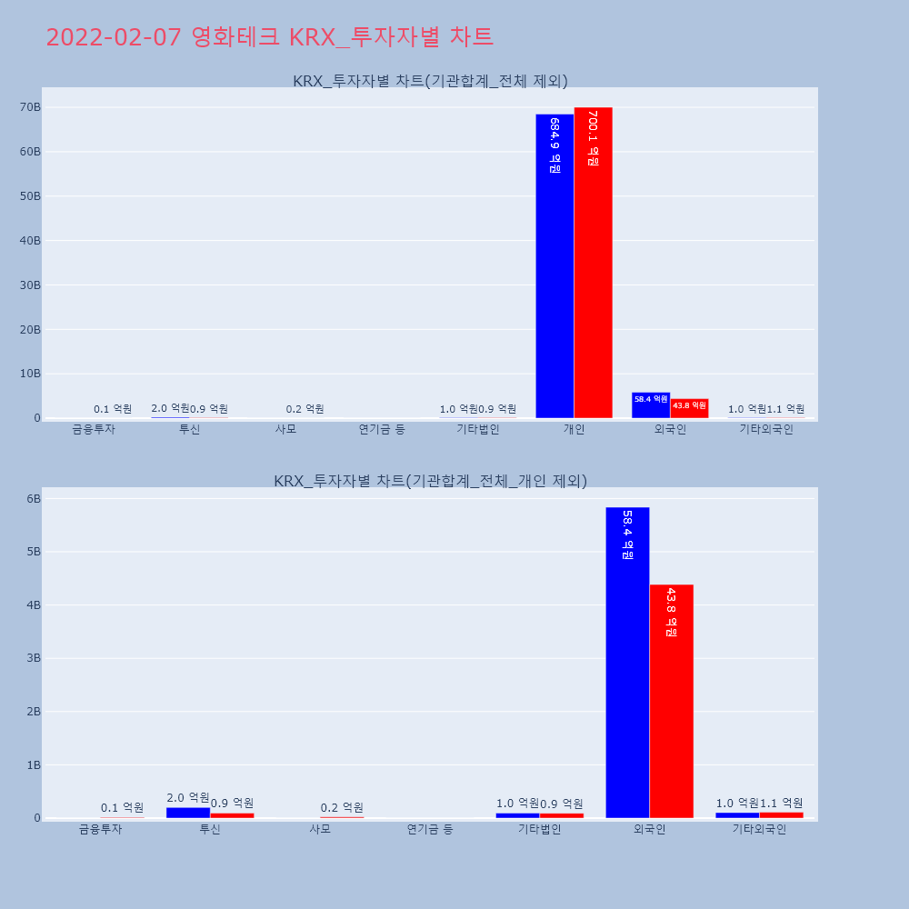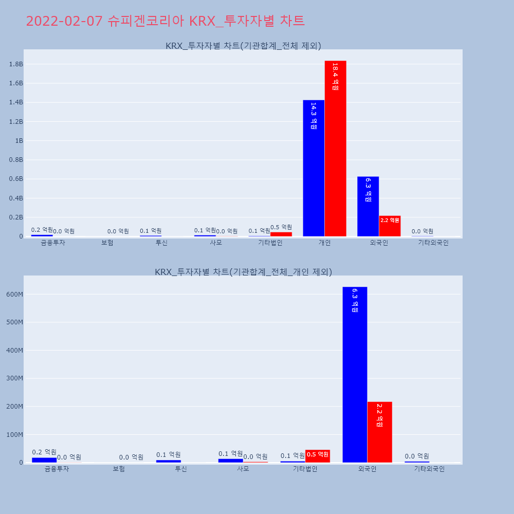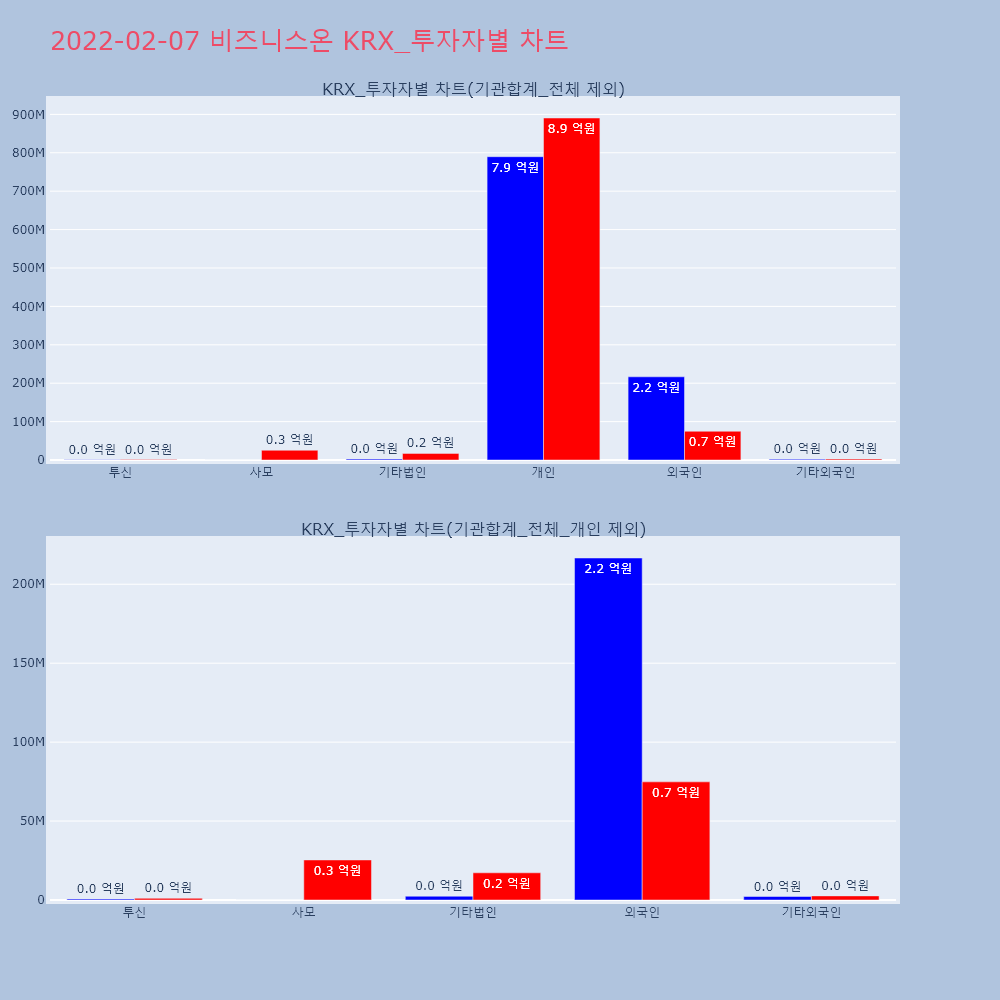 | 투자기관 | 거래량_매도 | 거래량_매수 | 거래량_순매수 | 거래대금_매도 | 거래대금_매수 | 거래대금_순매수 |
