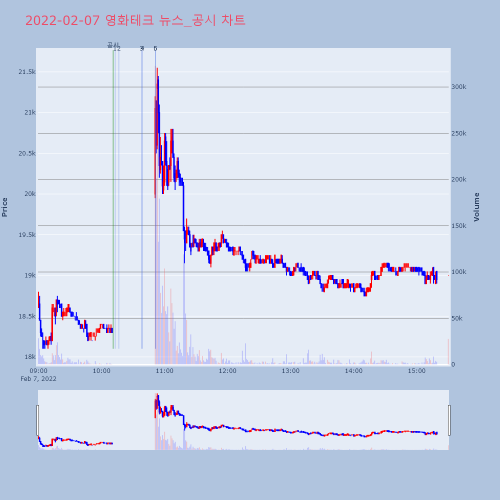 | 2022. 02. 07 시간외 특징주 휴림로봇 삼부토건 세종텔레콤 KH 필룩스 켐트로닉스 웰크론한텍 우진 (0) | 2022.02.07 |