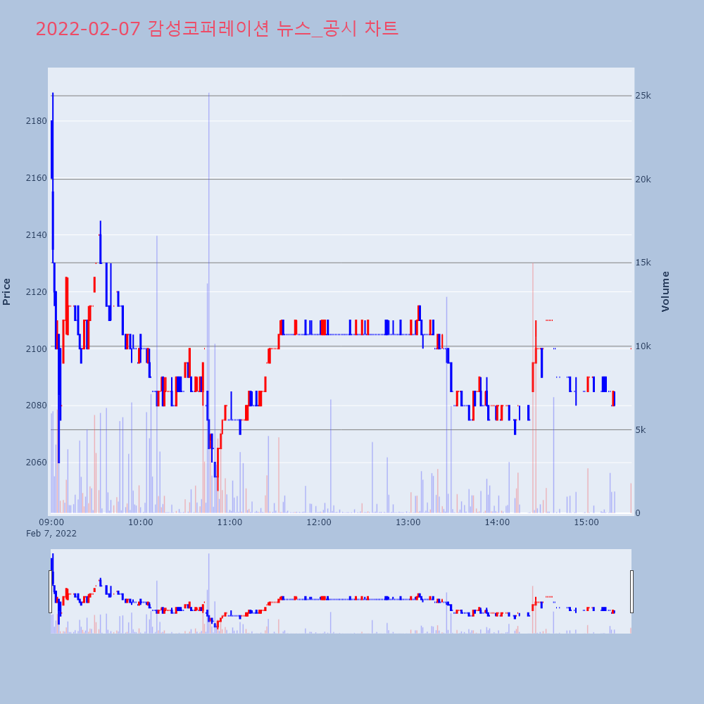 | 2022-02-07 16:19:00 | 20220207800911 | 매출액또는손익구조30%(대규모법인은15%)이상변경 |