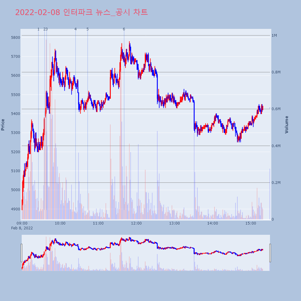 | 2 | 인터파크, +10.84% VI 발동인터파크(035080)가 VI가 발동했다. 전일 대비 | 조선경제 | 인터파크 | 2022-02-08 09:35:27 |