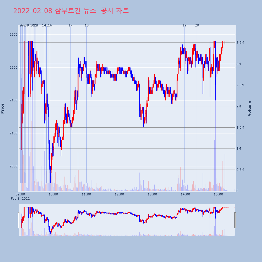 | 16 | [장초반 인기 검색 종목 PICK5] - 삼부토건, 휴림로봇, KH 필룩스... 최적의 매매타이밍을 실시간으로 전송하여 투자자들에게 도 | 파이낸셜 | 삼부토건 | 2022-02-08 09:53:58 |
