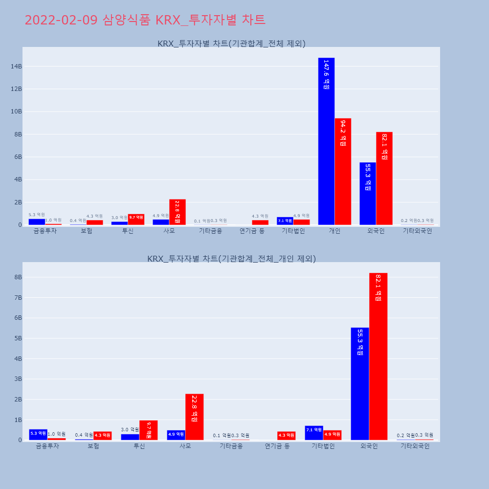 | 개인 | 152,202 | 97,441 | -54,761 | 14,756,445,500 | 9,419,714,500 | -5,336,731,000 |
