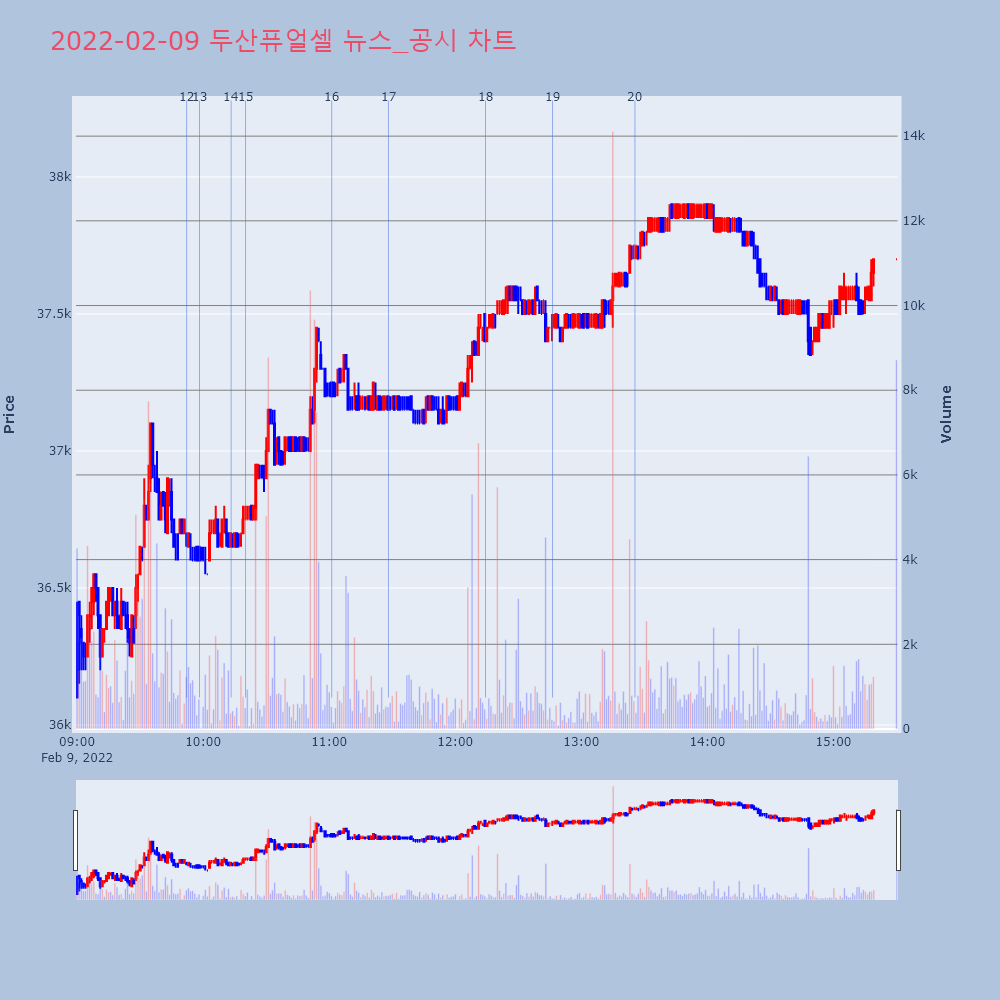 | 1 | '시장 선점' 롯데케미칼·두산퓨얼셀, 친환경 사업 박차 제목 : '시장 선점' 롯데케미칼·두산퓨얼셀, 친환경 | 인포스탁 | 두산퓨얼셀 | 2022-02-08 05:30:35 |