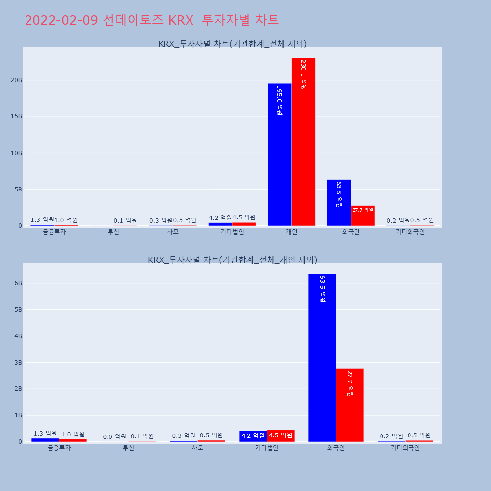 | 투자기관 | 거래량_매도 | 거래량_매수 | 거래량_순매수 | 거래대금_매도 | 거래대금_매수 | 거래대금_순매수 |