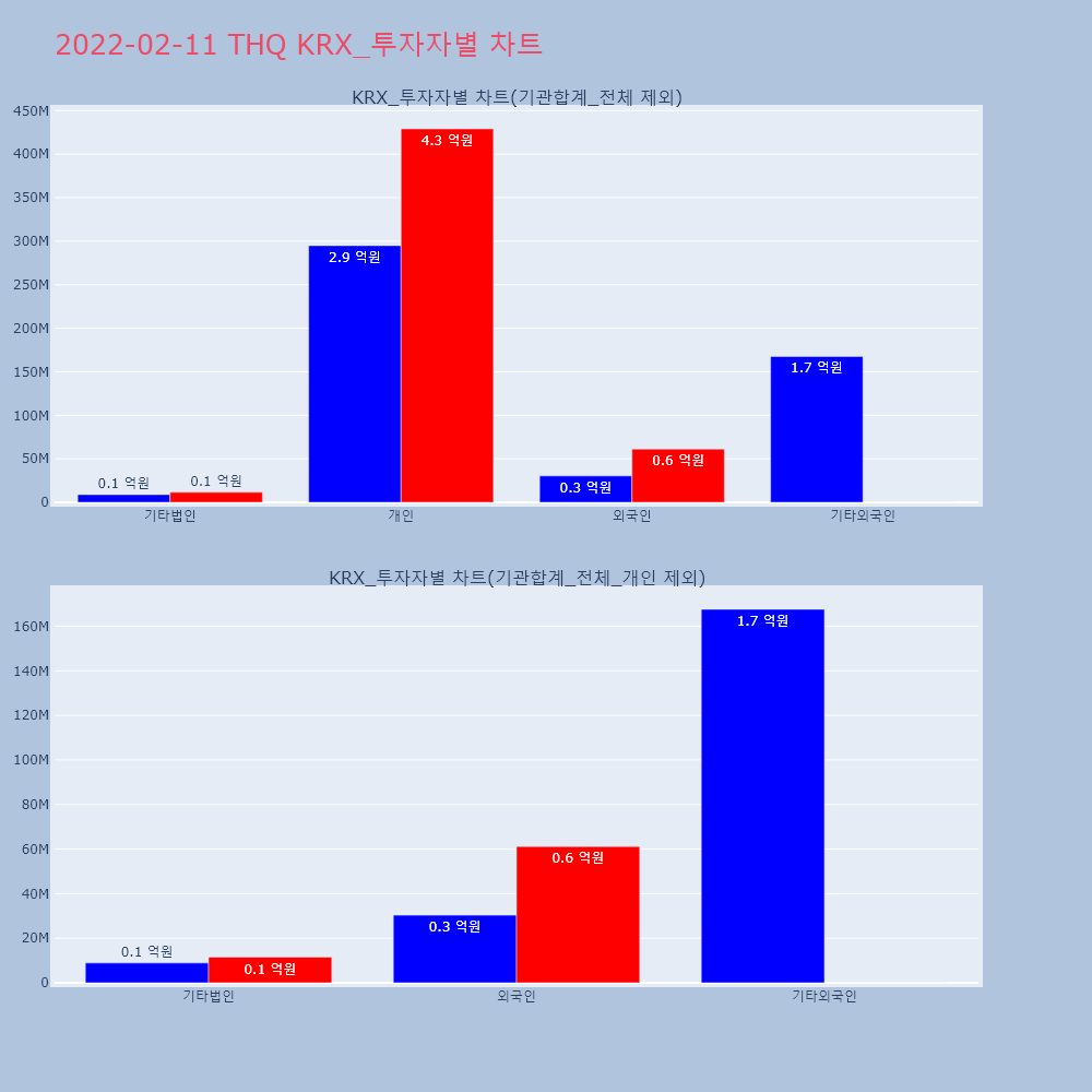 | 투자기관 | 거래량_매도 | 거래량_매수 | 거래량_순매수 | 거래대금_매도 | 거래대금_매수 | 거래대금_순매수 |