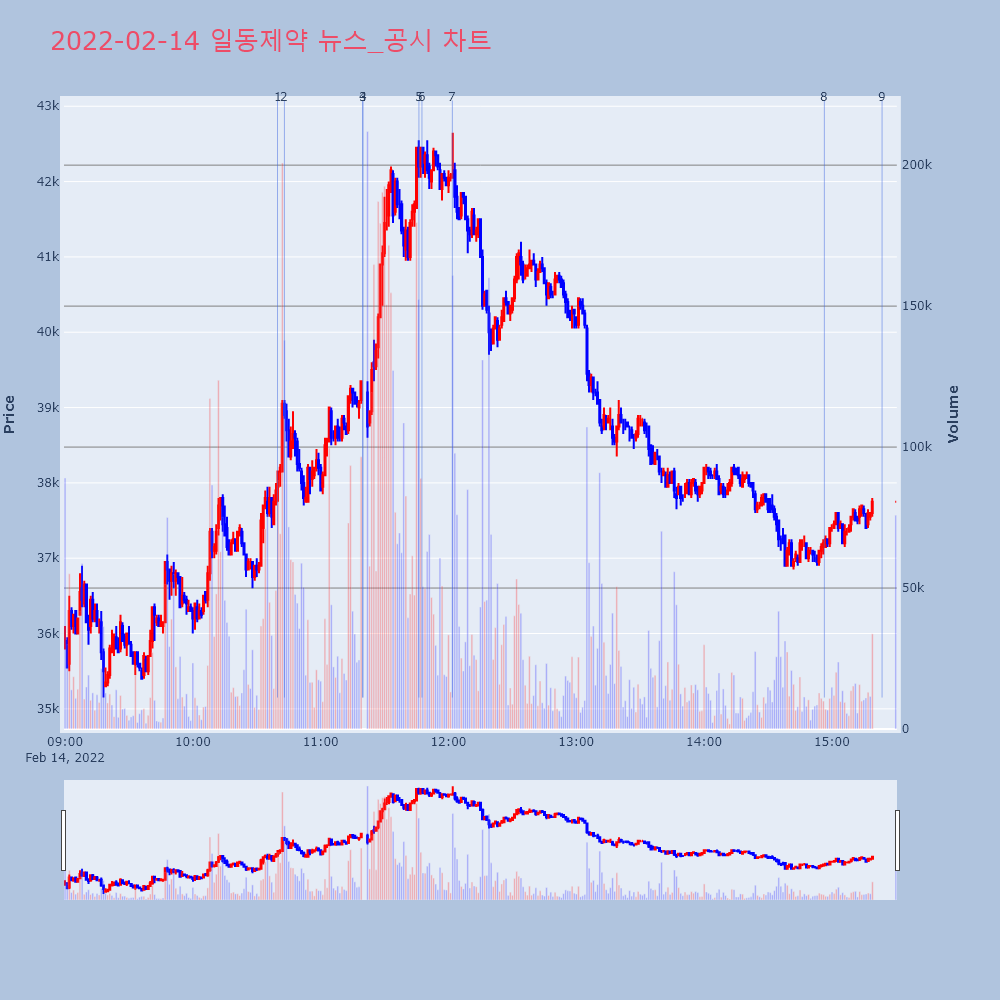 | 5 | [특징주] 일동제약, 경구용 코로나 치료제 긴급사용 신청 소식에 급등 제목 : [특징주] 일동제약, 경구용 코로나 치료제 긴 | 인포스탁 | 일동제약 | 2022-02-14 11:46:08 |