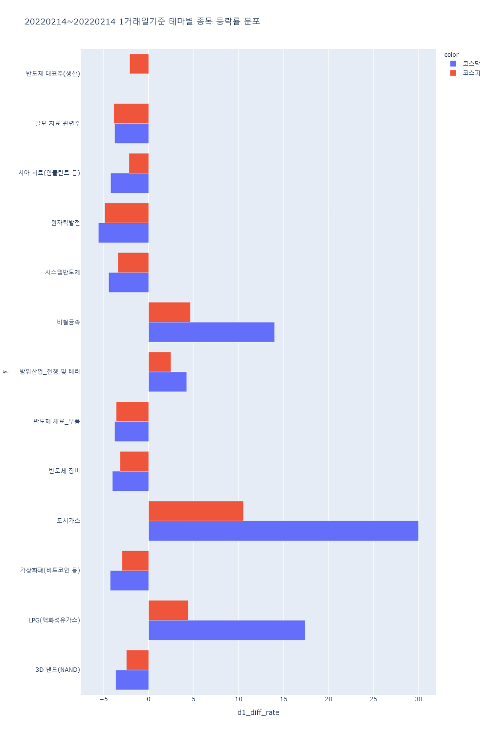 ▷러시아-우크라이나 긴장 확대 속 국제유가 급등 등에 LPG 및 도시가스 테마 상승. 러시아-우크라이나 무력 충돌 우려 확대 속 일부 방위산업/전쟁 및 테러 테마 상승.