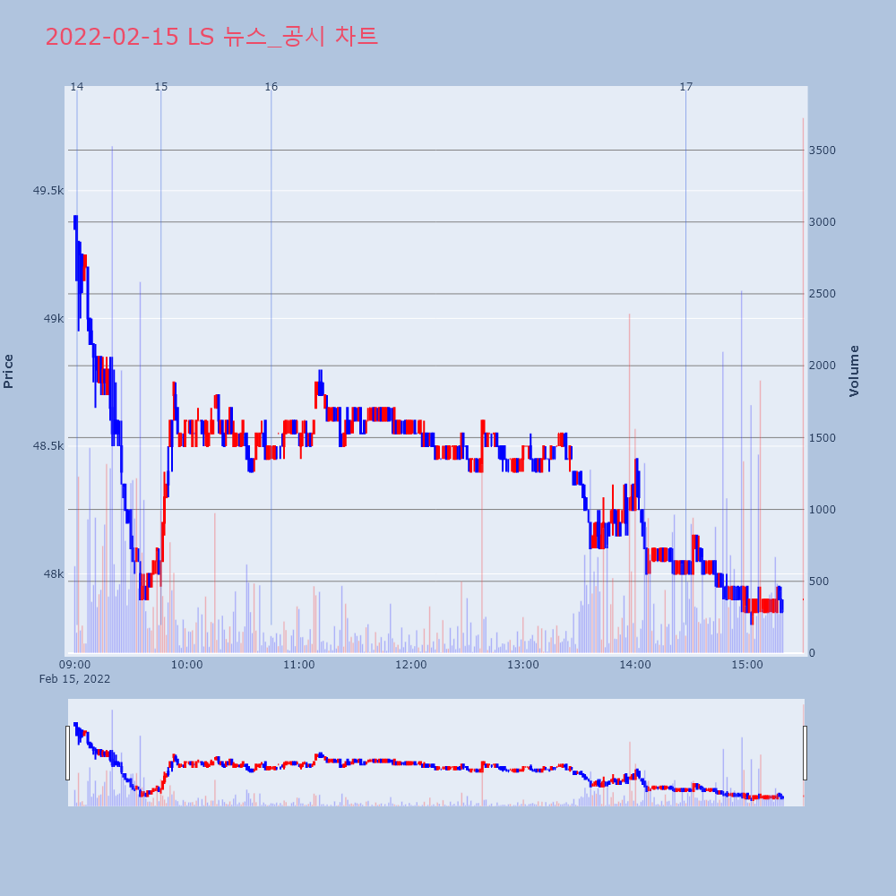| 2 | LS, 21년 연결 영업이익 6,040.26억원 LS는21년 연결기준 영업이익이 6,040.26억원으로 | 인포스탁 | LS | 2022-02-14 15:11:10 |