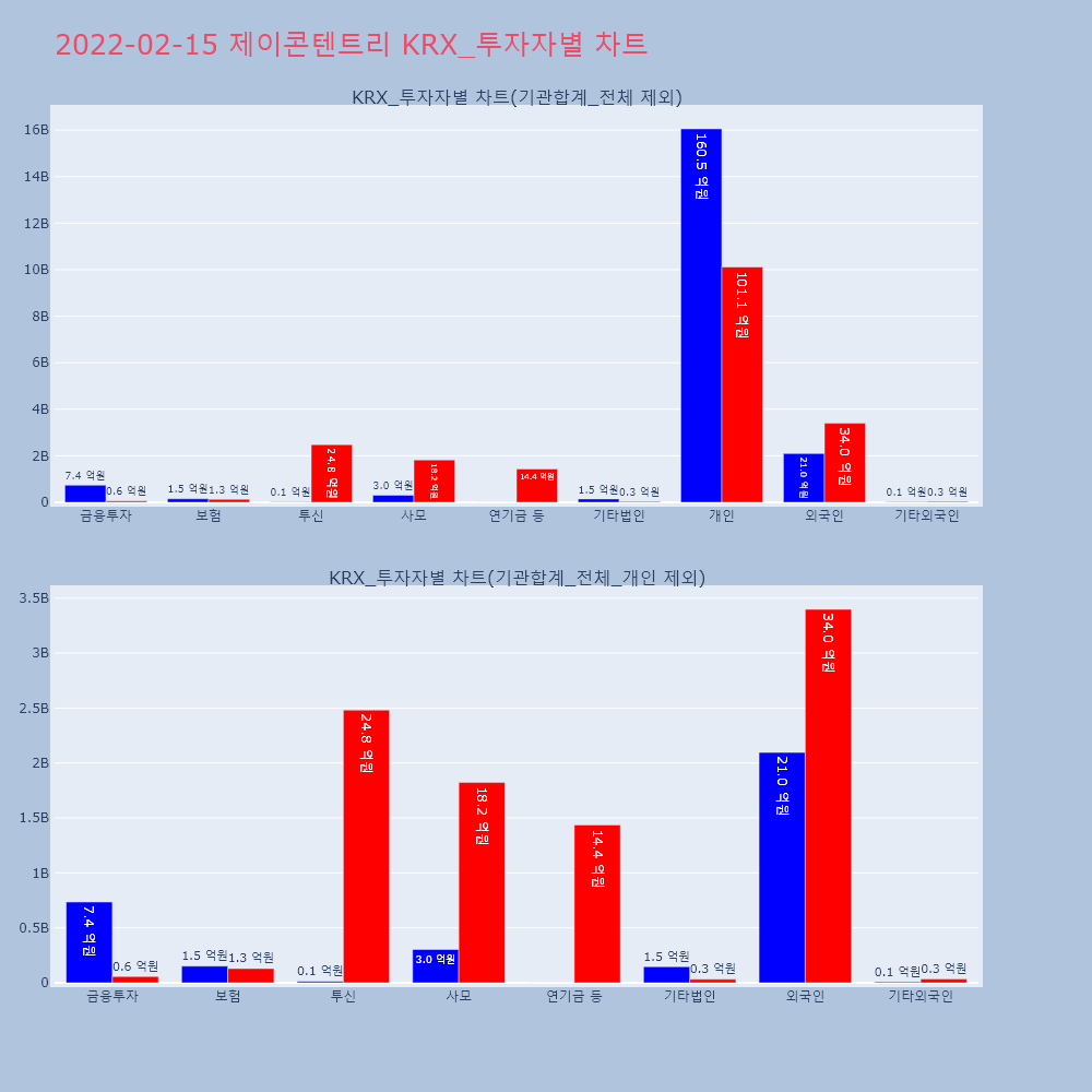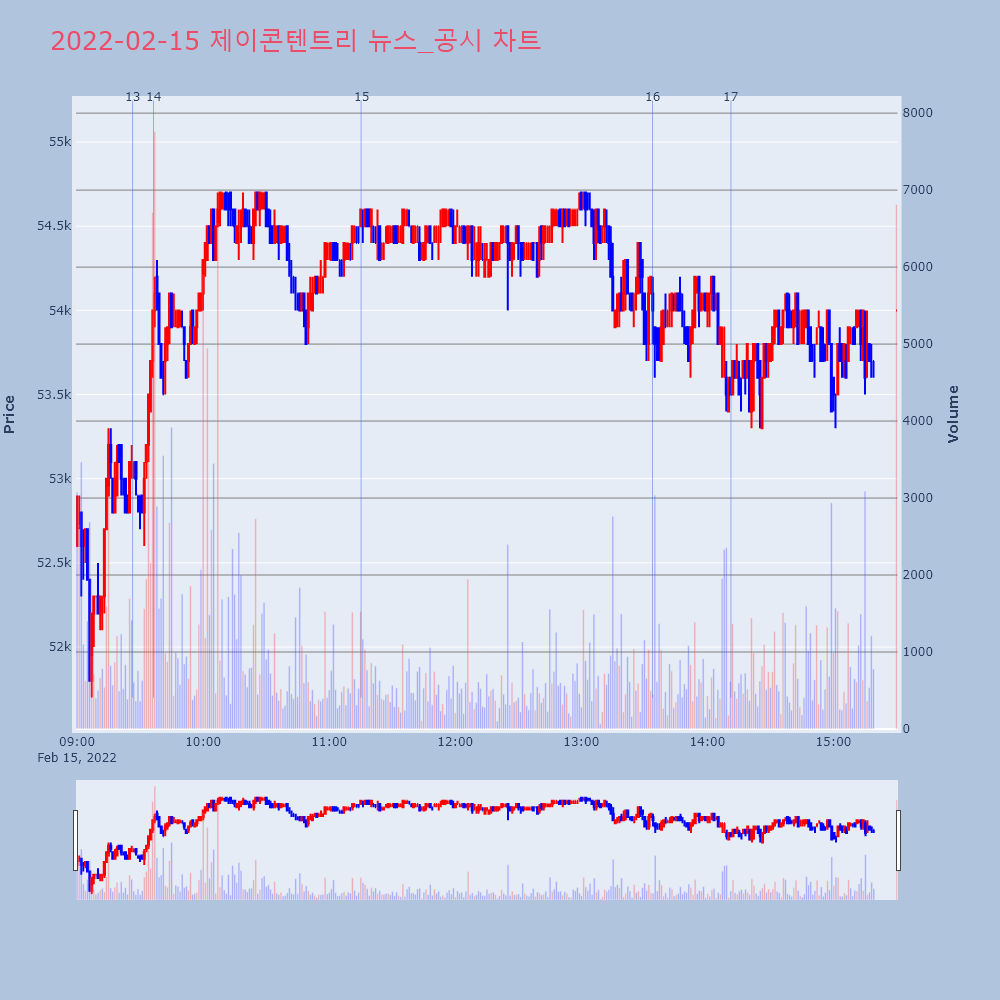 | 16 | [특징주] 제이콘텐트리, 극장 리오프닝 기대감에 강세 제목 : [특징주] 제이콘텐트리, 극장 리오프닝 기대감 | 인포스탁 | 제이콘텐트리 | 2022-02-15 13:33:53 |
