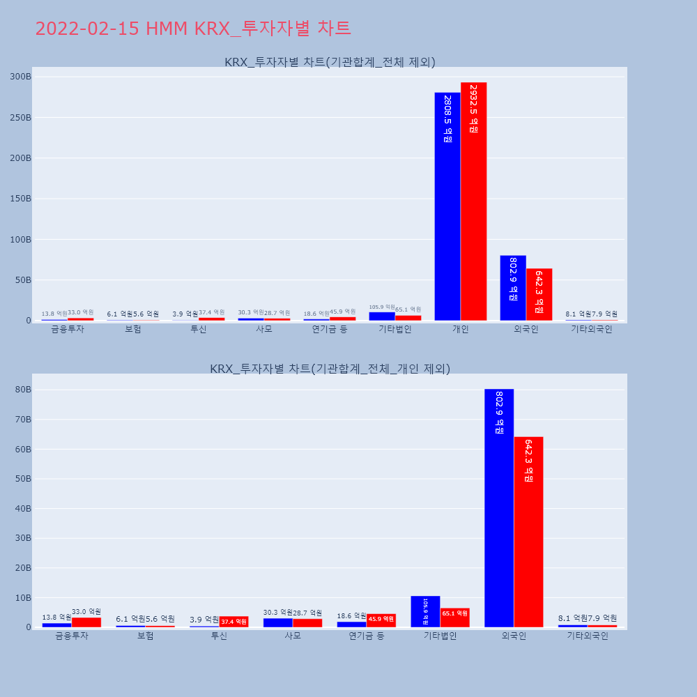 | 투자기관 | 거래량_매도 | 거래량_매수 | 거래량_순매수 | 거래대금_매도 | 거래대금_매수 | 거래대금_순매수 |