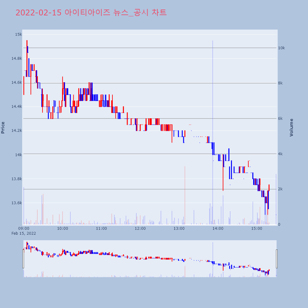 | 2022-02-14 14:14:00 | 20220214900536 | 매출액또는손익구조30%(대규모법인은15%)이상변동 |