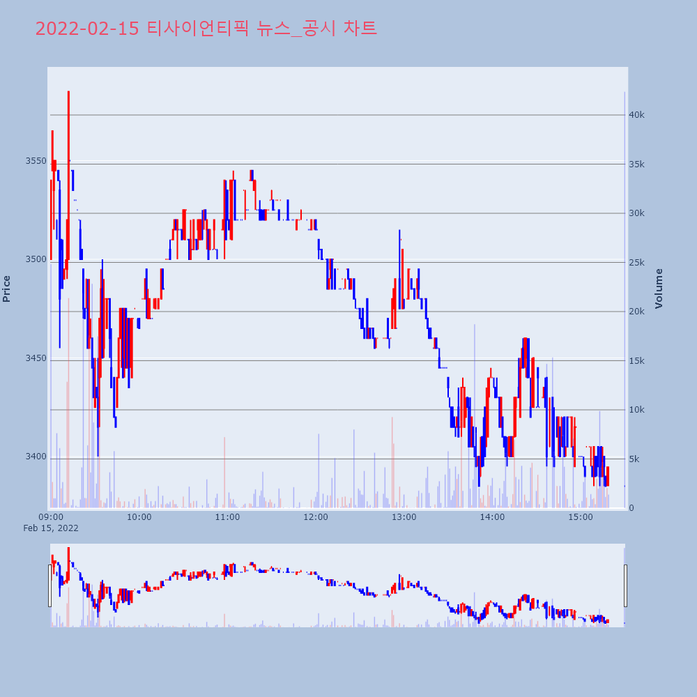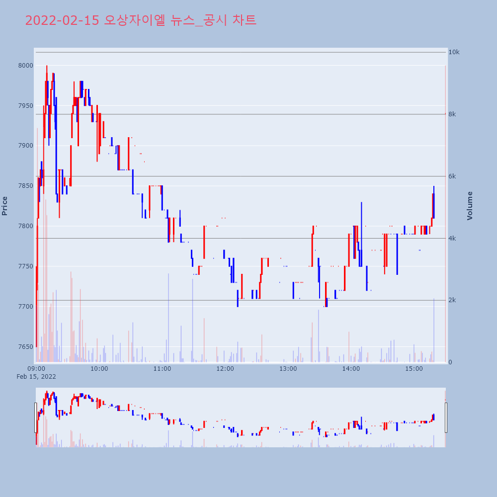 | 2022-02-15 16:46:00 | 20220215800656 | 매출액또는손익구조30%(대규모법인은15%)이상변경 |