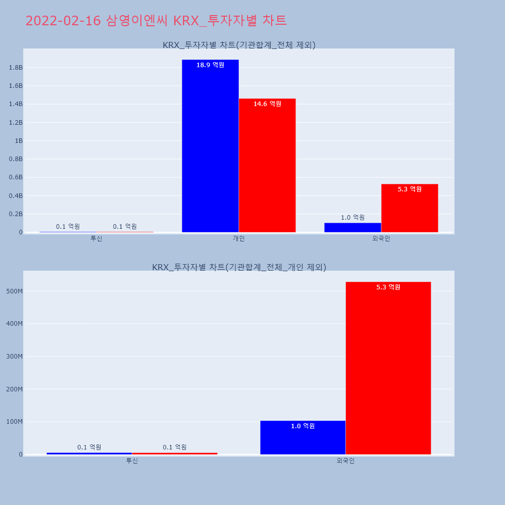 | 외국인 | 125,618 | 611,369 | 485,751 | 3,118,299,200 | 15,167,398,950 | 12,049,099,750 |