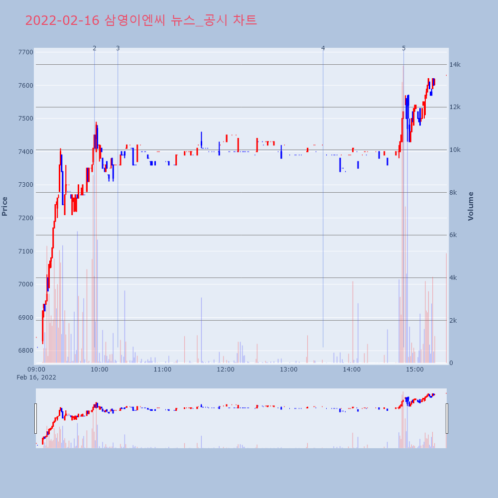 | 5 | 삼영이엔씨, +10.75% VI 발동삼영이엔씨(065570)가 VI가 발동했다. 전일 대비 | 조선경제 | 삼영이엔씨 | 2022-02-16 14:49:29 |