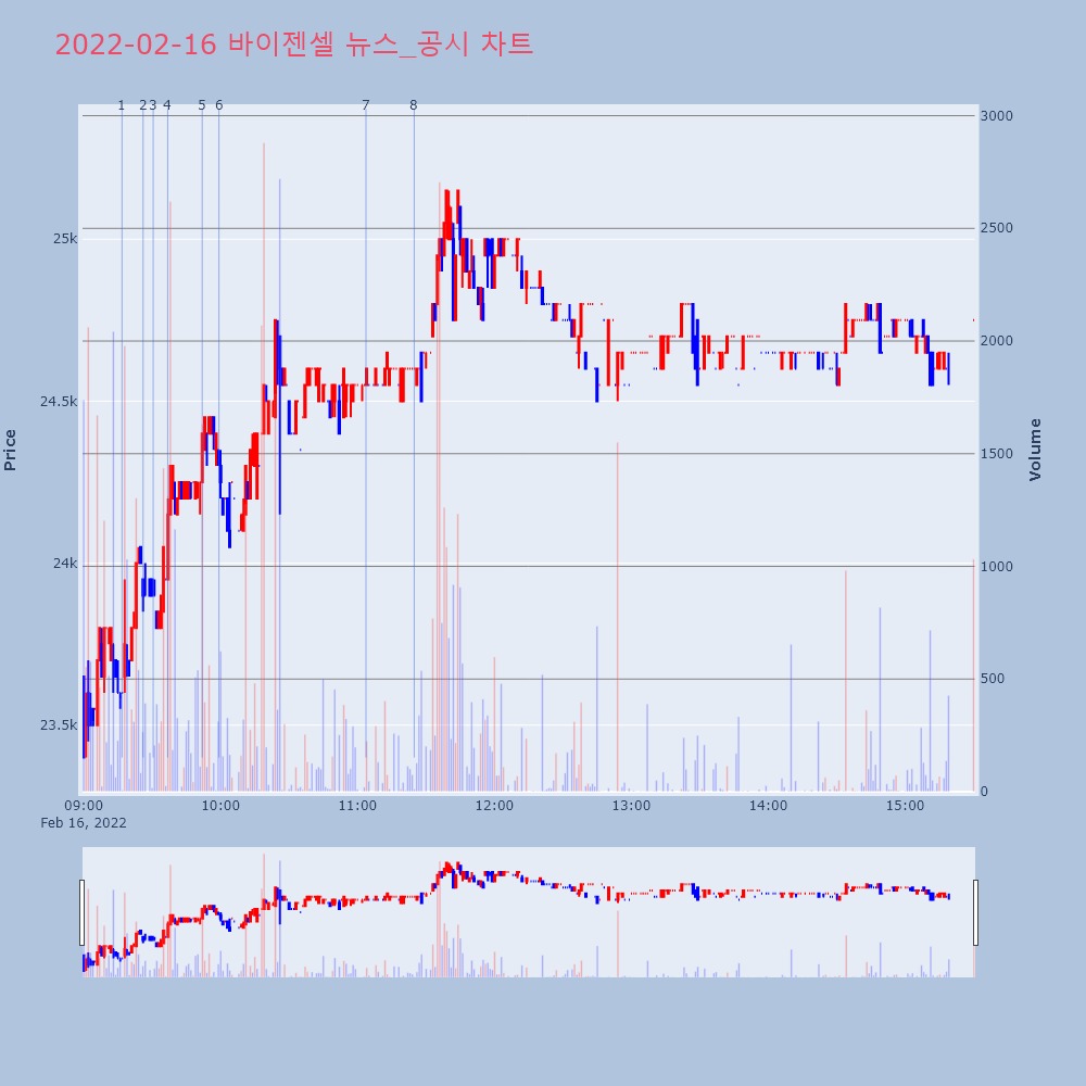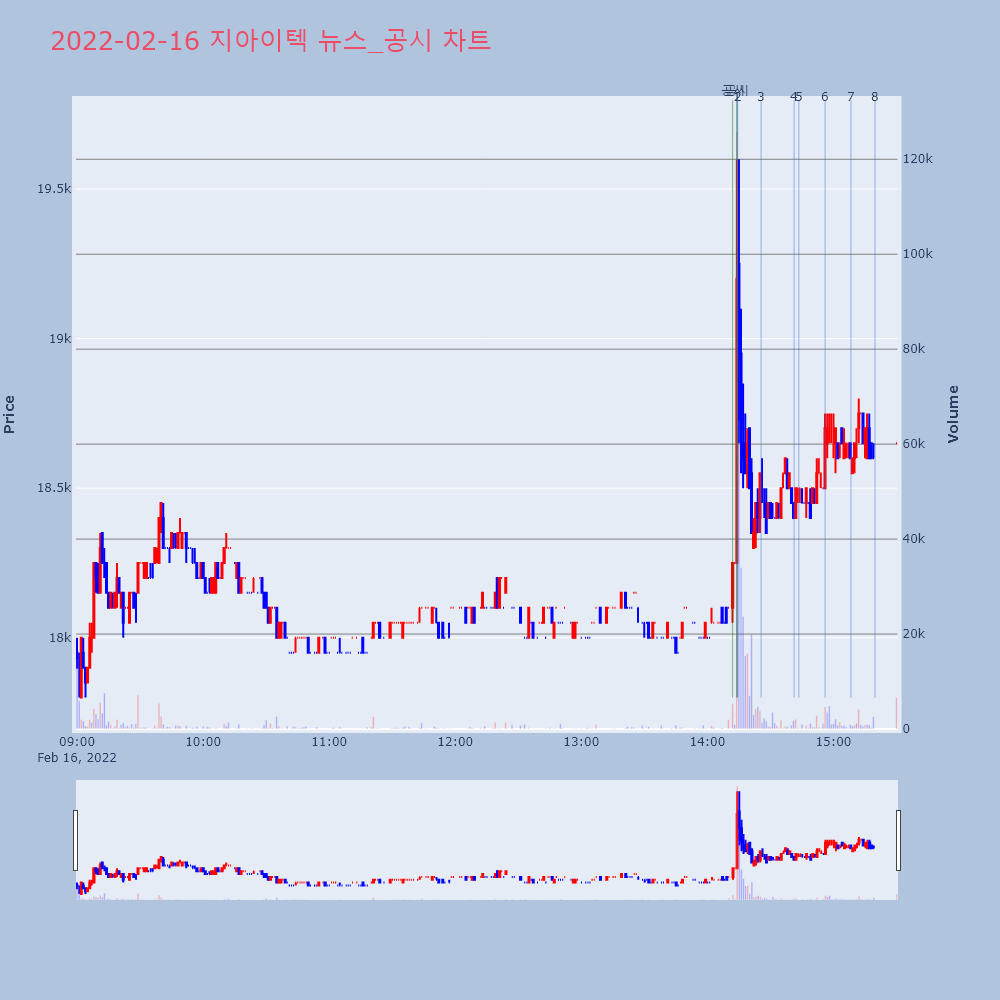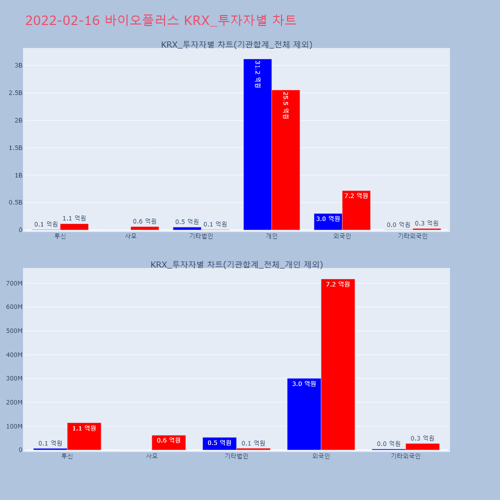 | 8 | 바이오플러스, +11.65% VI 발동바이오플러스(099430)가 VI가 발동했다. 전일 대 | 조선경제 | 바이오플러스 | 2022-02-16 10:43:08 |