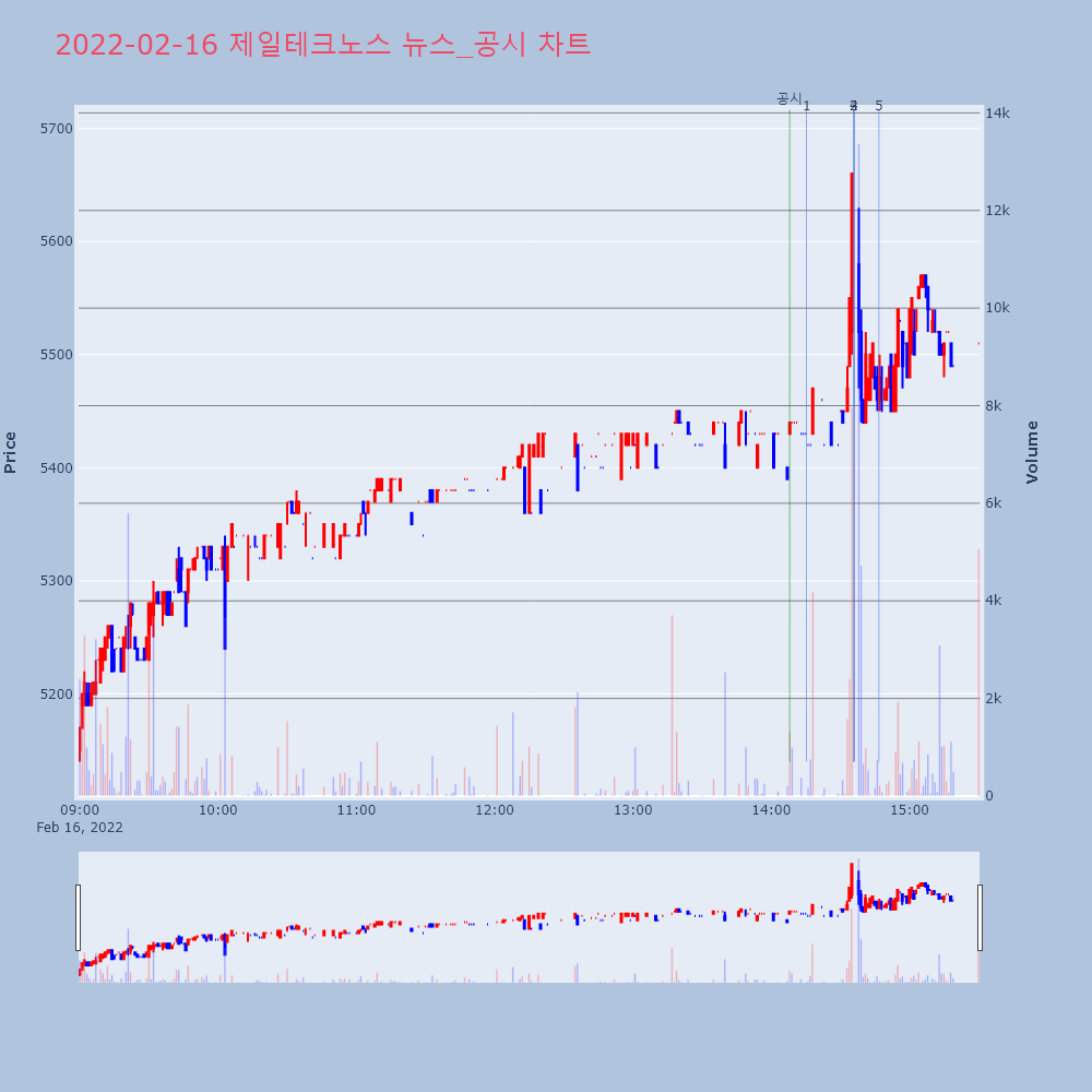 | 3 | 제일테크노스, +12.10% VI 발동제일테크노스(038010)가 VI가 발동했다. 전일 대 | 조선경제 | 제일테크노스 | 2022-02-16 14:35:59 |
